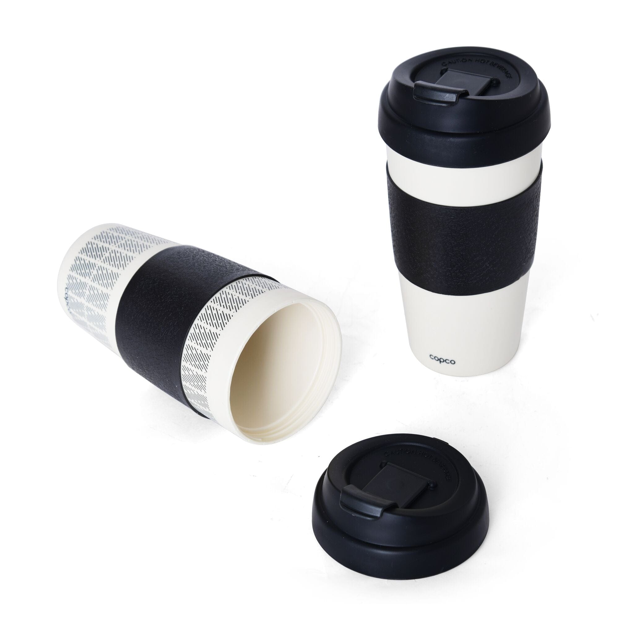 Copco Reusable, Insulated Double Wall Travel Mugs 16-ounce White/Black , Set of 2