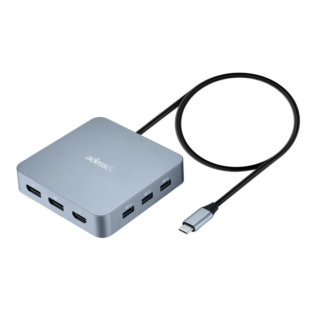 The Adesso 11-in-1 USB-C Multiport Docking Station is simple to use, just plug and play! Expand your laptop and USB-C device’s connection port with this multiport docking station. It has dual DP ports and an HDMI port for transmitting 4K content to your external monitor and can also charge other devices. Triple displays support up to 8K resolution. This USB Type-C multi-port docking station has 4 USB 3.2 Gen 2 SuperSpeed ports, 1 RJ45 Port, one 3.5-mm audio jack, and 1 peripheral lock port.