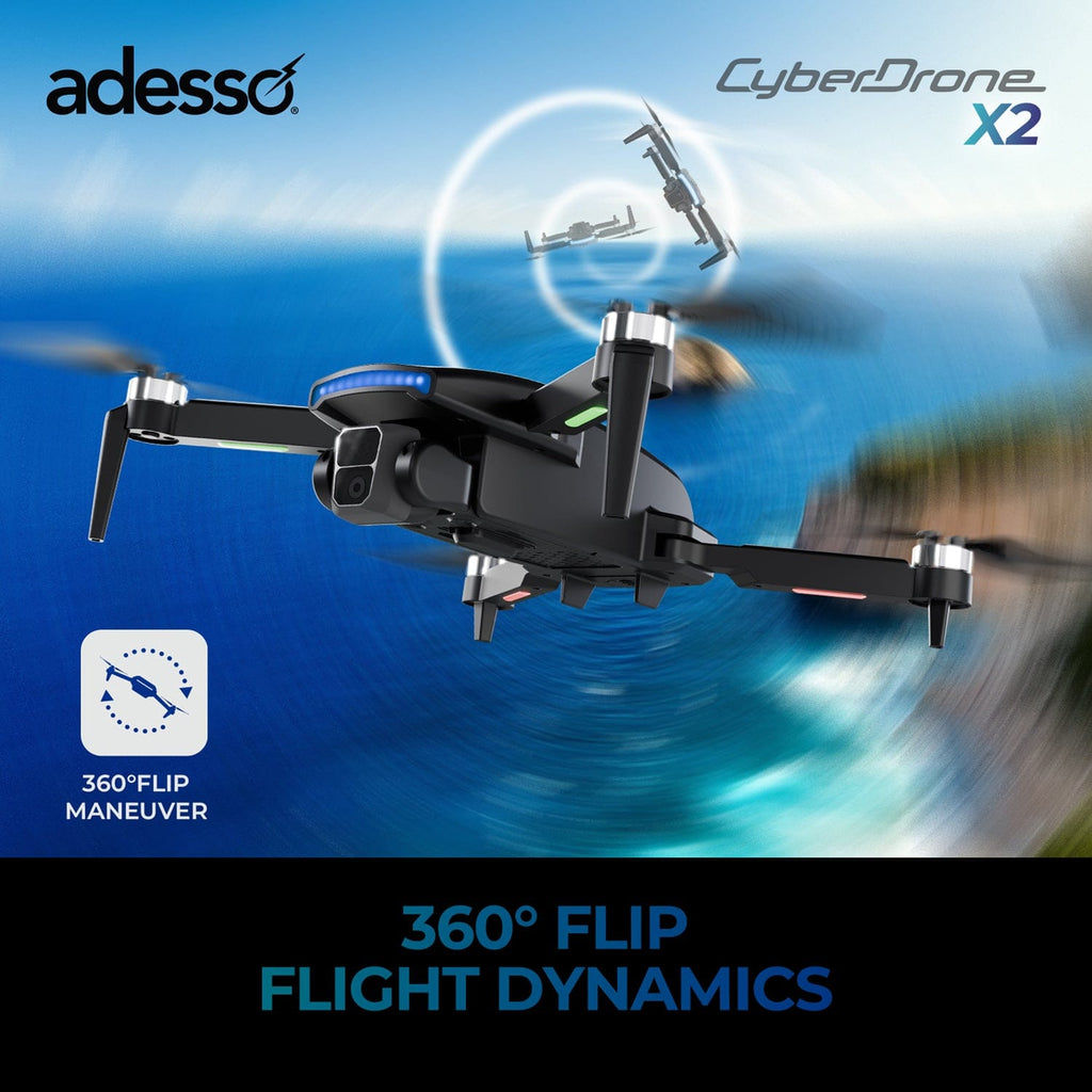 The Adesso CyberDrone X2 is a lightweight and portable drone equipped with a 1080p FPV camera and a gimbal for stable, high-quality video and photo capture. It offers dual control options via a 2.4-GHz remote controller or a mobile app, giving users flexible ways to pilot the drone. With a 262-ft. control range, it provides a reliable and responsive flying experience, making it ideal for capturing aerial footage or enjoying scenic flights.