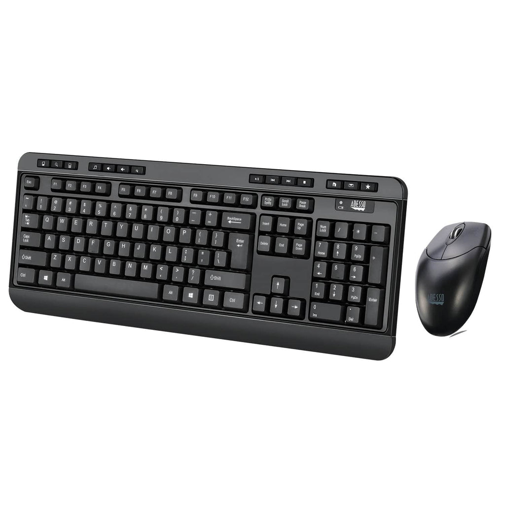 The Adesso EasyTouch WKB-1320CB Antimicrobial Wireless Desktop Keyboard and Mouse offers users 2 supreme input devices with a wireless range up to 30 ft. The wireless keyboard features 14 hotkeys for quick access to your media player controls, email, Internet browser and other common applications like My Computer, Mail and Calculator. The keyboard uses quiet membrane key switches that provide a more quiet and tactile response. The wireless mouse is equipped with an optical sensor that is more sensitive and accurate than a traditional optical mouse. This combo is ideal for use in your office or home.