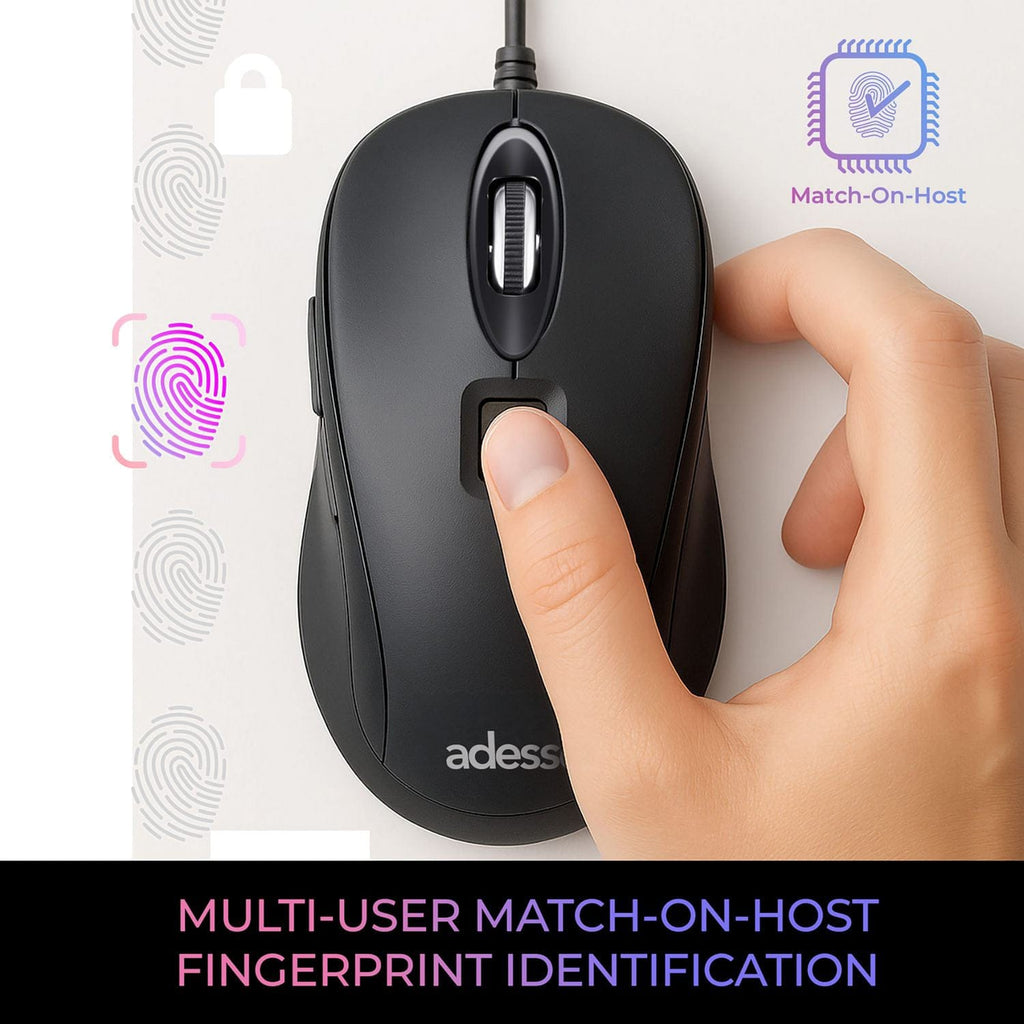 Secure your data with the Adesso iMouse F1-TAA, a wired USB mouse featuring a built-in fingerprint reader, AES-256 encryption, and 1200 DPI optical tracking. Windows Hello compatible and TAA compliant, it’s ideal for government, military, and enterprise environments requiring reliable biometric authentication. With a 6-ft. cable, you can roam with the mouse as needed.