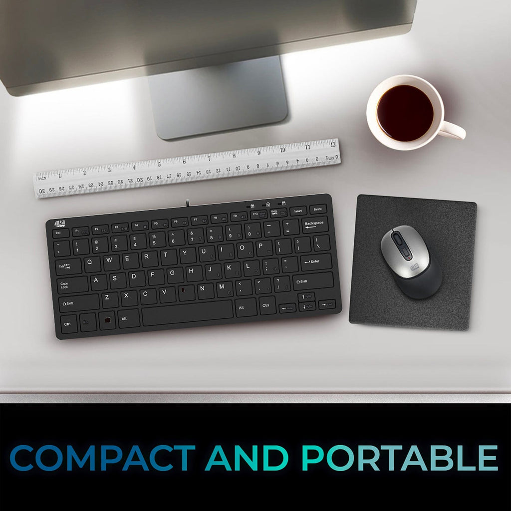 The Adesso SlimTouch Mini Keyboard with USB Hubs features a 78-key mini keyboard layout with 2 USB hubs which adds easy access and convenience for input devices like flash drives mice or USB dongle receivers. The built-in multi-functional hotkeys allow quick access to your multimedia controls and Internet browser commands. The keys are designed with slim and low-profile scissor-switch keys, bringing a more comfortable, quieter, and faster typing experience. This slim and mini keyboard is less than 12-in. wide and is an impressive space-saver for desktops in homes or offices and ideal for use in POS, kiosks, warehouses, manufacturing environments, and more.