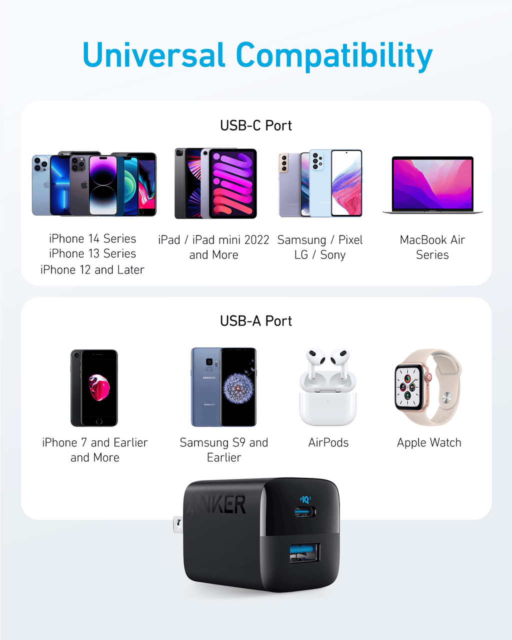 2-in-1: With both a USB-C port and a USB-A port, you can now charge up to 2 devices simultaneously.