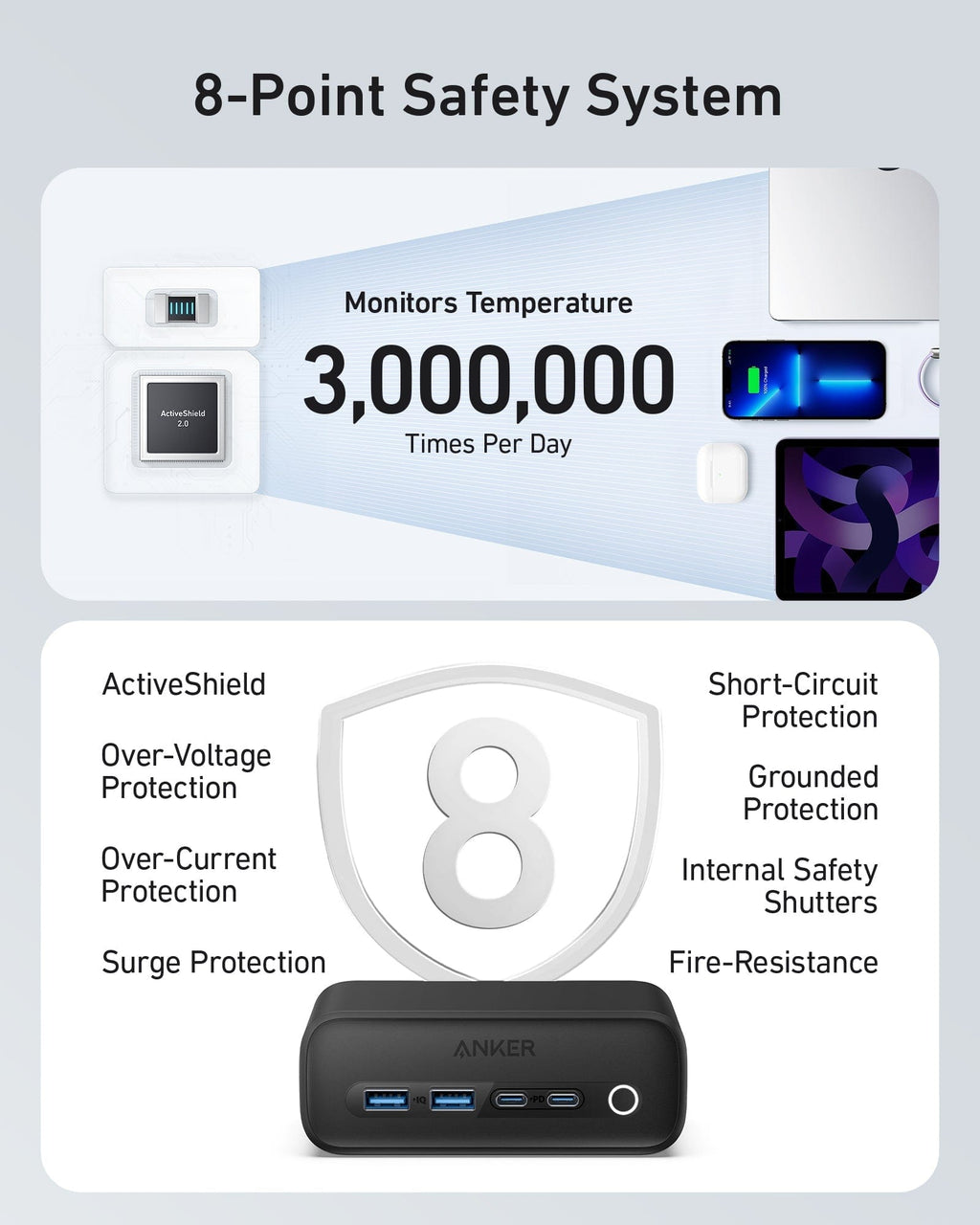 - Enhanced Safety Assurance: Features ActiveShield 2.0 technology that dynamically adjusts power and monitors temperature over 3 million times daily to protect your devices effectively.