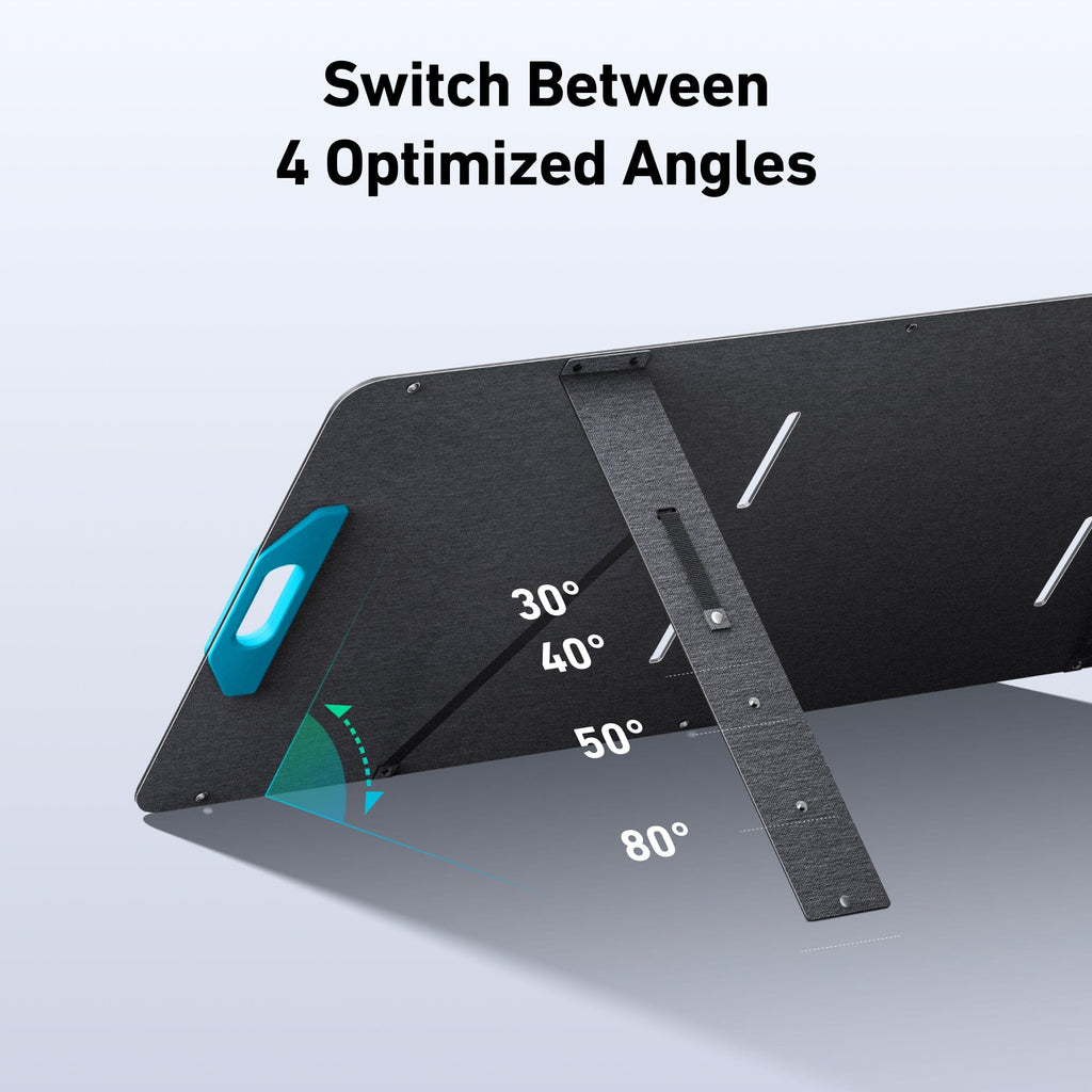 • Set Angles for Max Sunlight Absorption: No matter wheryou are, the season, or time of day, you can maximize sunlight absorption. Easily switch between 30°, 40°, 50, or 80° anglees.