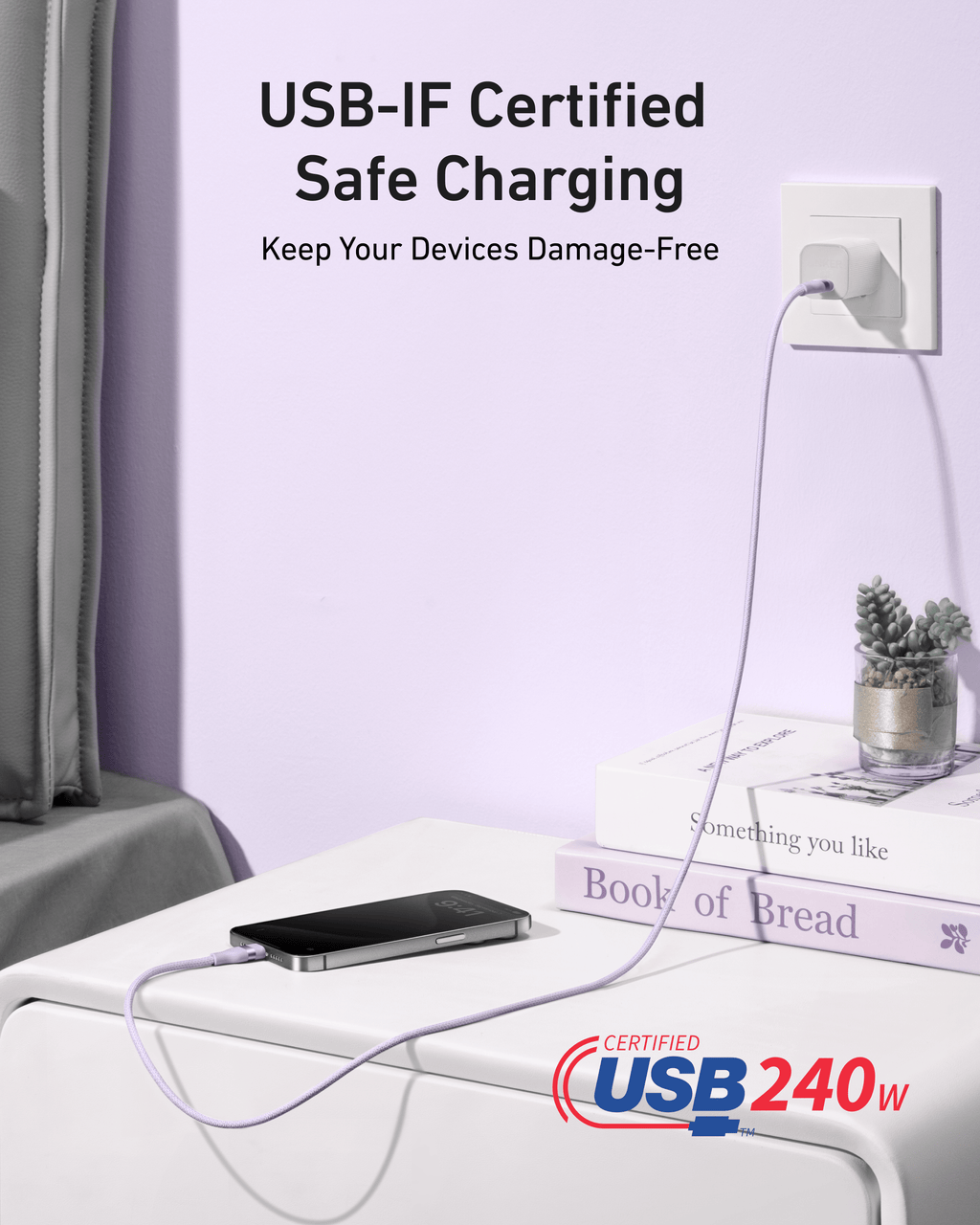 - Super-Fast 240W Cable: This 240W USB-IF certified cable can charge your 16-inch MacBook Pro (2023) to 50% in just 28 minutes or your iPhone 15 Pro to 50% in 26 minutes.