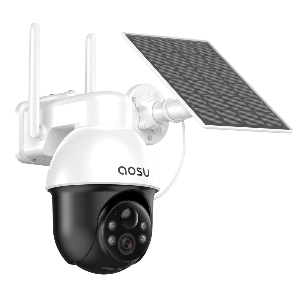 This aosu Wireless Solar Security Camera is a top-notch security device that is built to keep your home, office, or property completely safe. With its state-of-the-art technology and advanced features, it is the ideal solution for anyone looking to secure their premises. In addition to its impressive video capabilities, our wireless solar PTZ camera also has 2-way audio communication. This allows you to talk to people on the other end of the camera in real time, which is ideal for monitoring your children or pets when you're not there. The camera's PTZ function allows you to pan up to 355° and tilt up to 90°, giving you complete control over your viewing angle. The aosu app lets you monitor your solar camera from anywhere and at any time. The 3-watt solar panel provides you with a renewable energy source that reduces your carbon footprint. The camera is made of ABS material, which makes it durable and weatherproof thanks to its IP66 rating. This Wi-Fi camera offers multiple storage options, including support for Cloud storage and microSD Card storage up to 128 GB, which ensures that you're always informed about any potential security threats. microSD Card is not included.