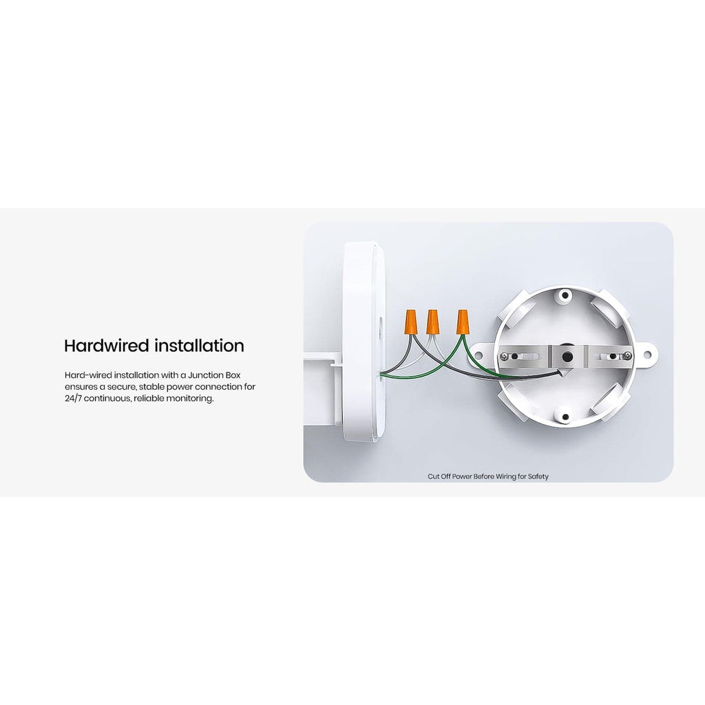 - Includes USB cable for initial setup, mounting kit, screw packs, and quick-start guide; junction box required for hardwiring is not included