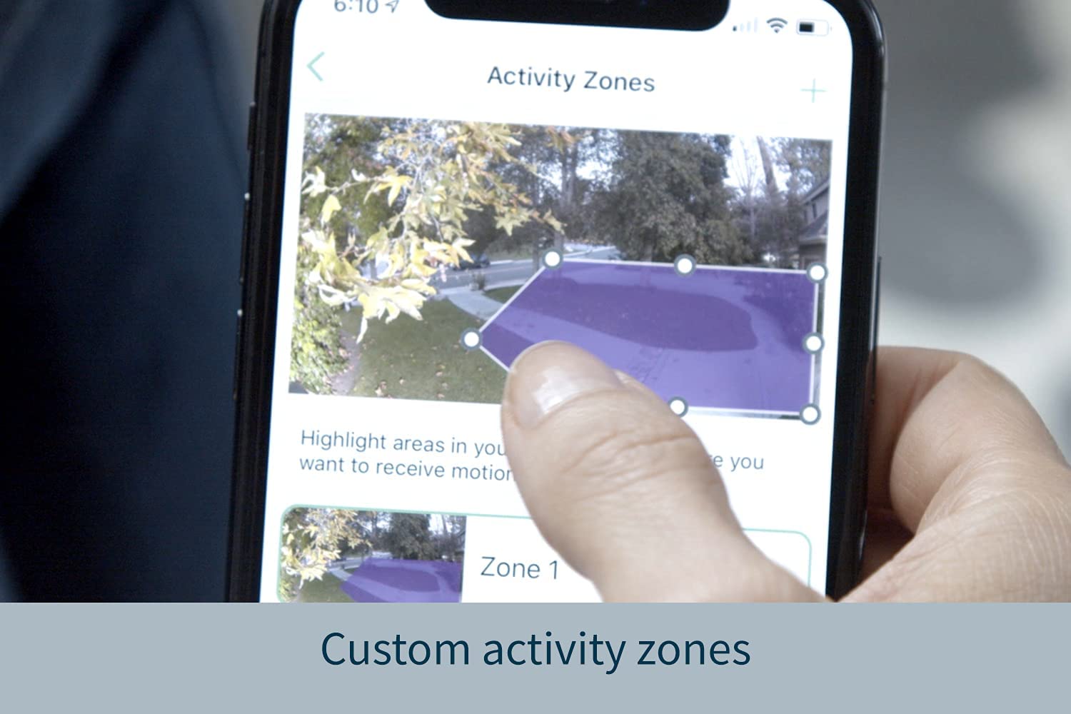 Smart phone displaying 2K HDR video displaying moving objects during the daySmart phone displaying wider 160 degree viewing angle of property during the daySmart phone displaying person caught on camera with camera color night vision