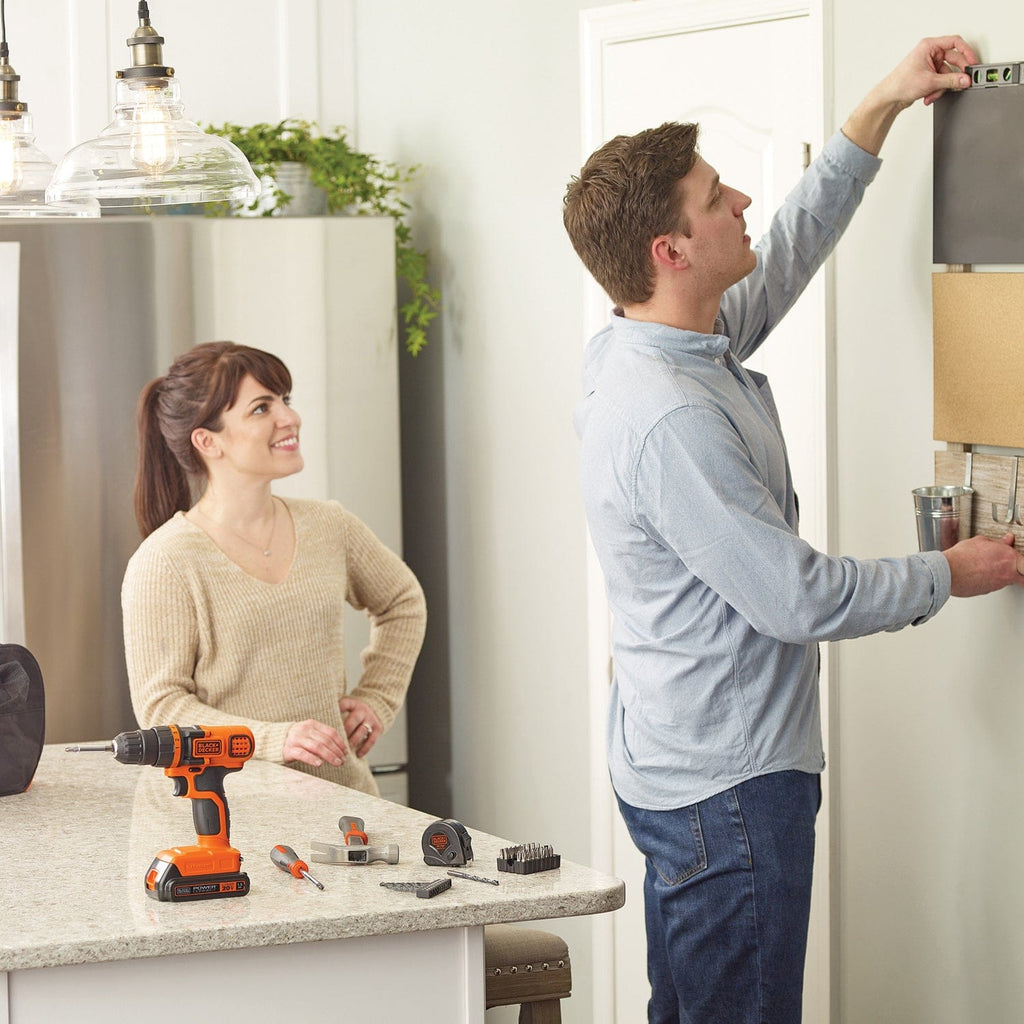 The Black and Decker 20-Volt MAX* Lithium Drill/Driver and 68-Piece Project Kit is the ideal kit to tackle a variety of household tasks and projects. It features a 20-volt MAX* Li-Ion drill/driver and 68 hand tools and accessories. Also included is a carrying case for convenient portability and storage.