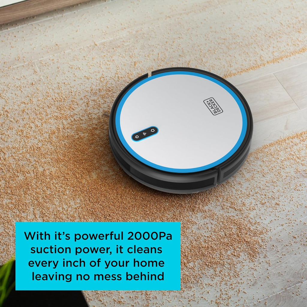 Introducing the BLACK+DECKER ROBOSERIES Robot Vacuum – Your Ultimate Smart Cleaning Companion! Experience the next level of home cleaning with the BLACK+DECKER ROBOSERIES Robot Vacuum. Boasting powerful 2000Pa suction, this advanced robot vacuum effortlessly tackles dirt, dust, and pet hair on a variety of surfaces, including hard floors, carpets, and low-pile carpets. Using Gyroscope Sensors, Robot Maps out the environment, navigates around furniture and follows a sophisticated cleaning path. It has multi-stage filtration with HEPA to prevent dust from escaping the robot during cleaning. Transform your home into a cleaner, more comfortable space with the touch of a button.