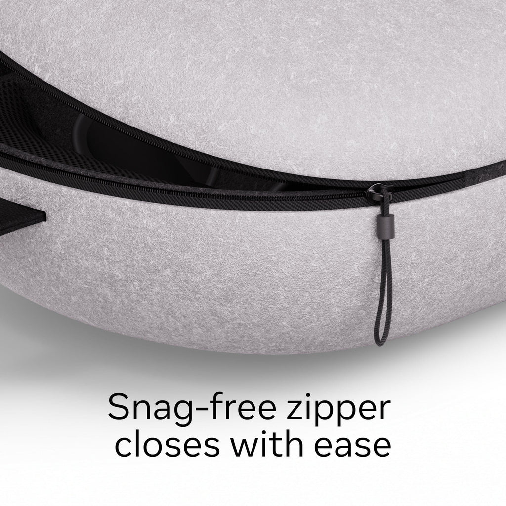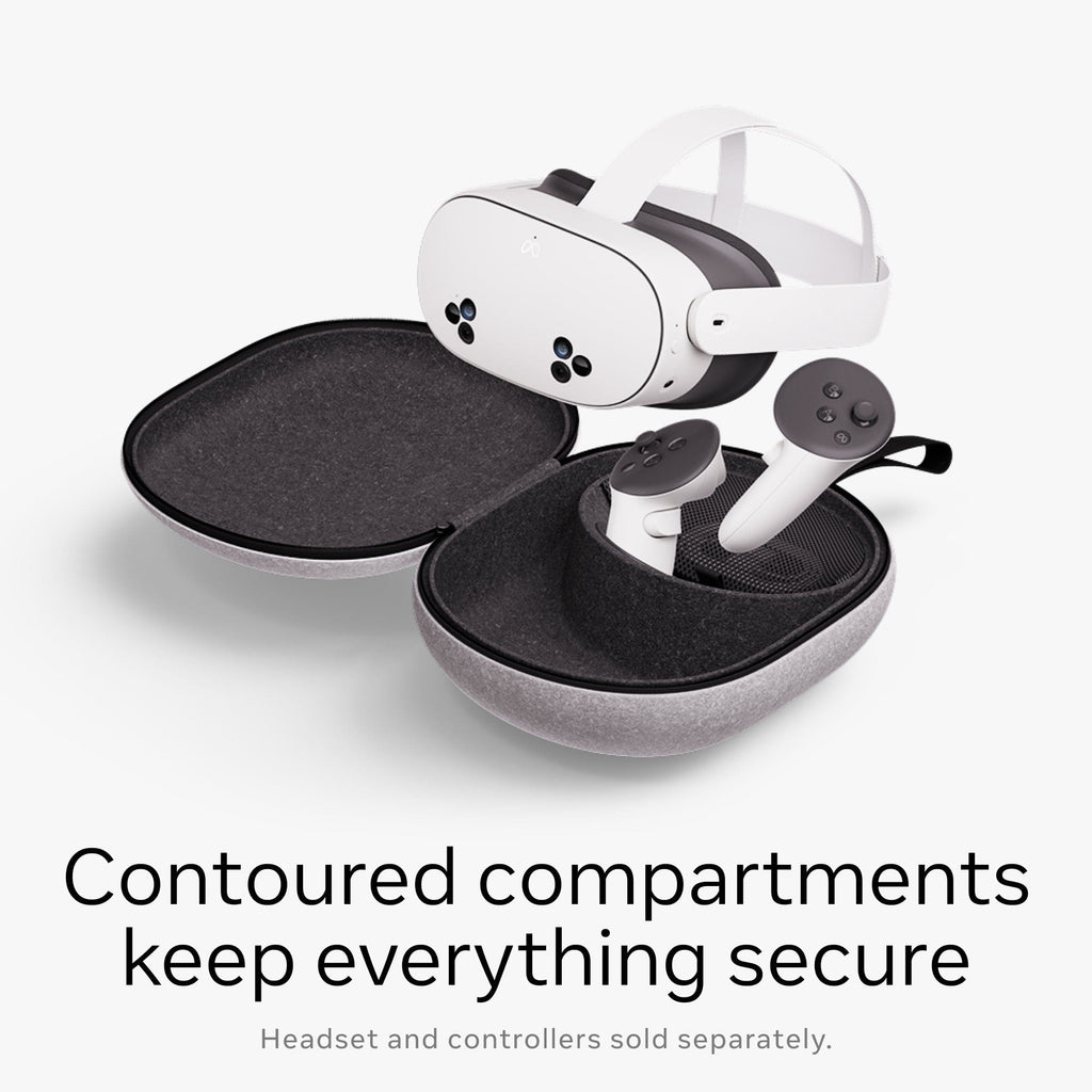 Enjoy your Meta Quest on the go with a hard protective case that takes up less space in your bag, so you can experience VR and mixed reality anywhere. The thoughtful design features an outer felt shell, soft hand strap and contoured inner compartments to keep your gear organized and secure. It’s designed to fit your Quest 3/3S, two Touch Plus Controllers with lanyards or Active Straps, a charging cable and adapter. With its lightweight construction, zipper opening, and rounded profile, this premium Meta accessory makes it easier than ever to access your Meta Quest 3/3S and accessories wherever you are.