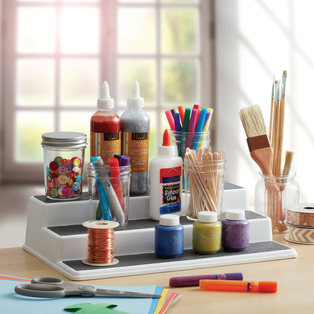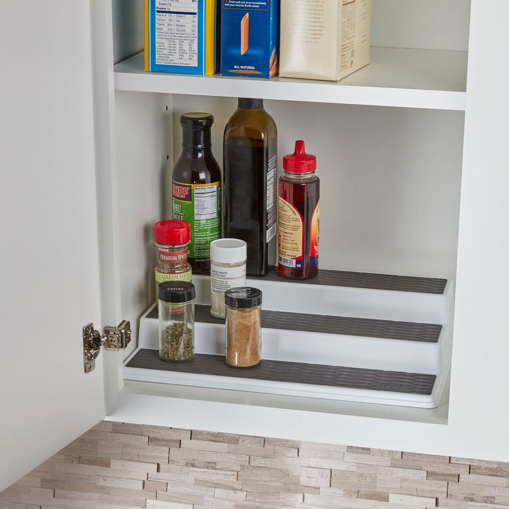 Non-skid cabinet organizers are sized to fit in every kitchen. Three levels of storage for easy viewing. Non-skid pads are easy to clean.