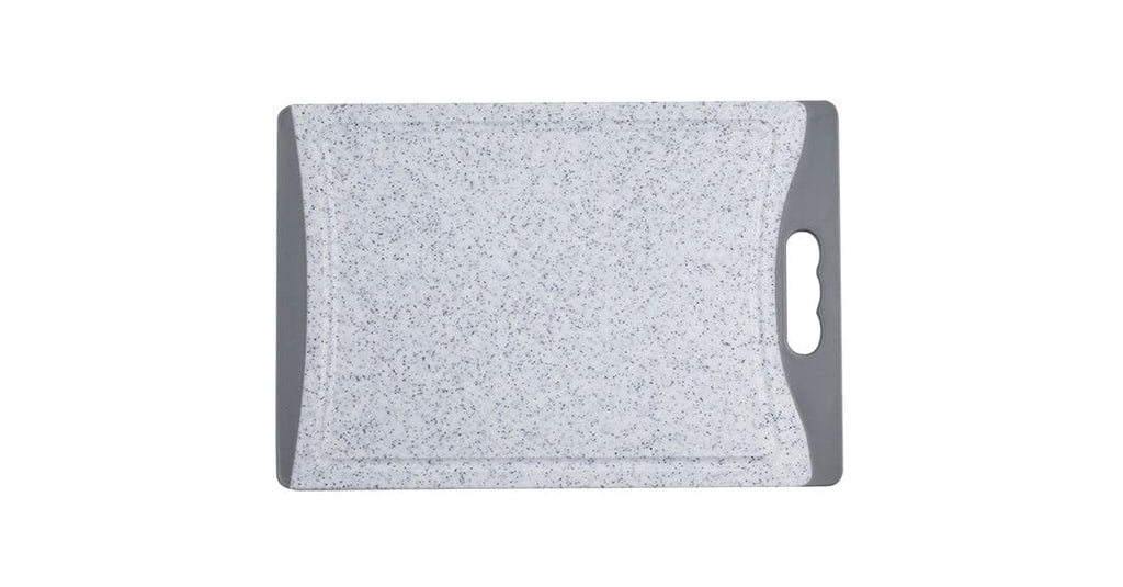 Protect countertops and knife edges with Cuisinart® cutting boards. These sturdy poly boards feature nonslip grips to stay put while in use. They are dishwasher safe for quick and easy sanitation, and have a lifetime warranty. Pick up a few – one for raw meat and poultry, and another for fruits, vegetables, etc., to avoid cross contamination. 14” x 10” Gray Marble Cutting Board with Non Slip Gray Trim.