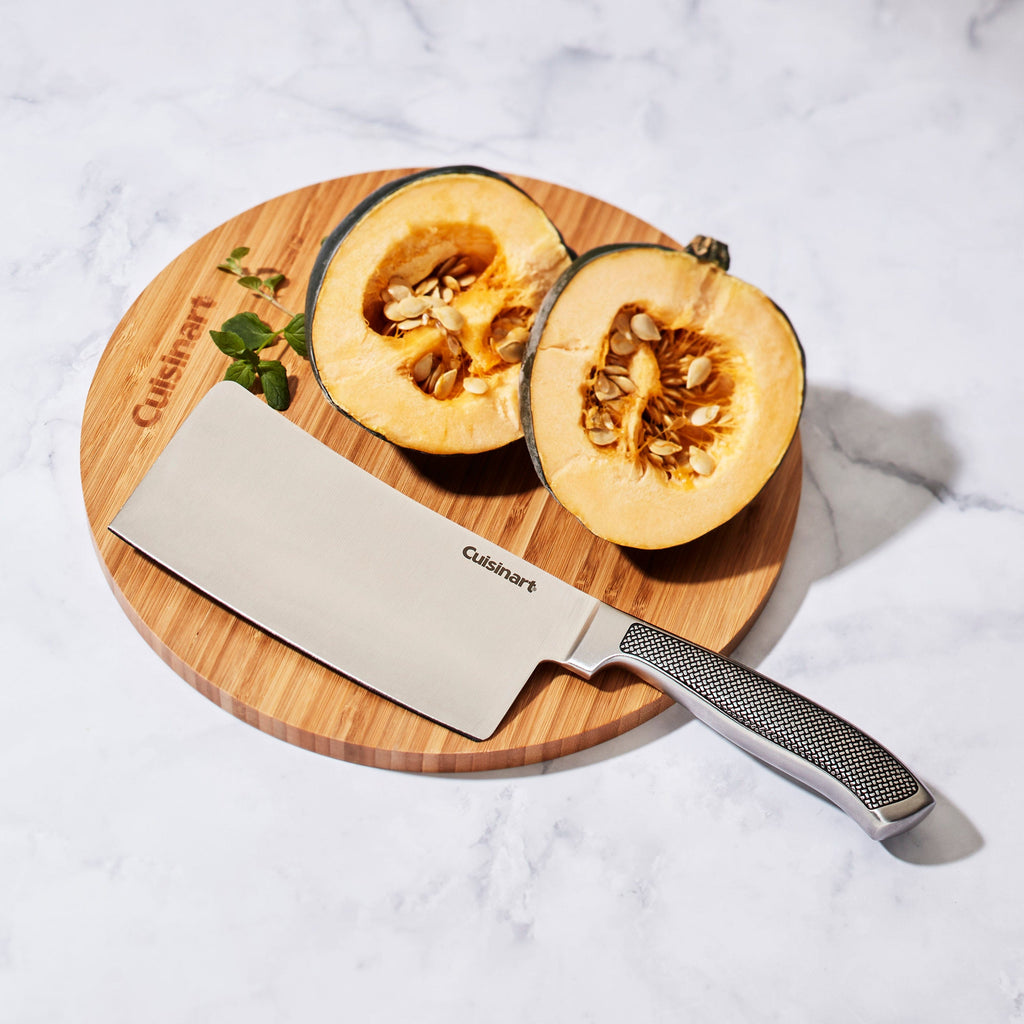 Effortlessly chop through bone as hard vegetables with this 7” Cleaver from the Graphix Collection by Cuisinart®. The textured handle provides a comfort grip while the sharp blade edge makes fast work of kitchen prepwork.