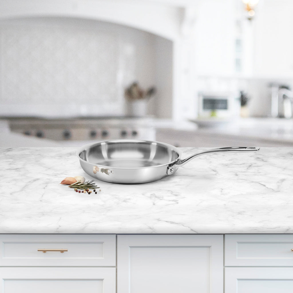 Perform all cooking tasks, large or small, with the Cuisinart® 5-Ply Stainless Steel 8" Fry Pan. This collection brings innovative design, elegant style and enhanced performance to kitchens everywhere. Professional stainless steel cookware features a special 5-ply composition that provides precise temperature control for savory pasta dishes, risottos and delicate sauces. Constructed with an induction-compatible stainless steel exterior, durable 18/10 stainless steel cooking surface and a triple-aluminum core that provides best heat retention and spreads heat evenly, eliminating hot spots. From reheating a single portion of soup to preparing appetizers, entrees and side dishes for the entire family, you'll find every tool you need in this collection.