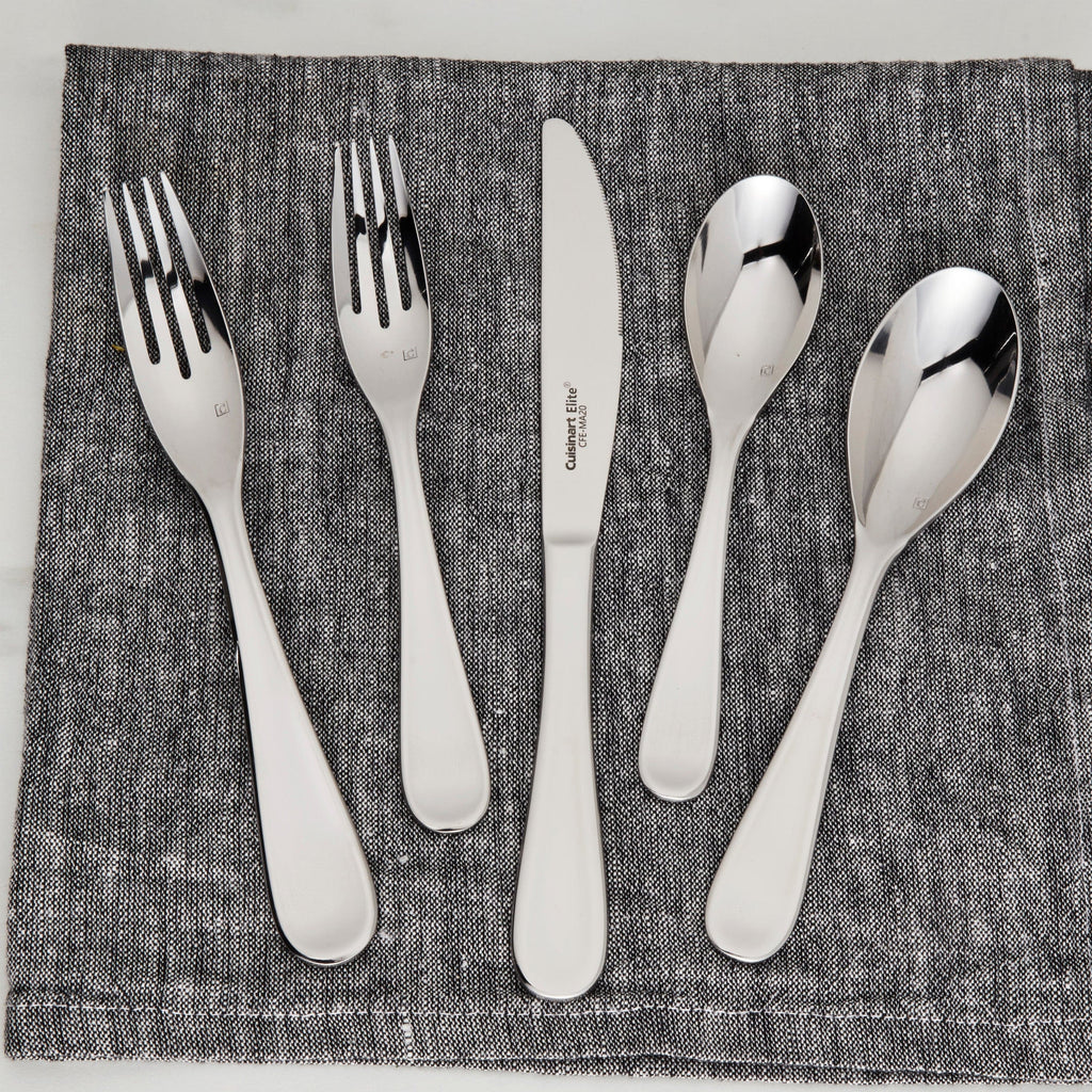 With Cuisinart® Flatware, Cuisinart® brings its distinguished reputation for quality and design leadership to the dining room. Handcrafted of the finest heavy-gauge stainless steel, these generously sized pieces are created with the utmost attention to detail. The finish is artfully blended. The craftsmanship is impeccable. And the styling evokes the same French spirit that infuses Cuisinart® Cookware, which we began making in France more than 35 years ago. Set your table with Cuisinart® Flatware and transform an ordinary meal into an extraordinary experience.