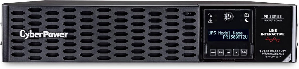 The PR1500RT2UN is a Smart App Sinewave rack/tower convertible UPS with line-interactive topology, surge protection, and battery backup. CyberPower’s Smart App Sinewave series has sine wave output to eliminate power gaps that can be detected by sensitive equipment and cause unexpected shutdowns. The Smart App Sinewave PR1500RT2UN improves battery life through battery equalization technology and Automatic Voltage Regulation (AVR), which corrects minor power fluctuations without switching to battery power. The enhanced chassis design with an easy-to-access toolless front panel, captive screws for battery panel access, and color-coded rear panel make battery changes and installations simple and fast. The PR1500RT2UN also has an innovative LCD panel that rotates 90°, tilts for a better viewing angle, and provides information on 47 different settings including UPS stats, UPS setup and control management, and testing options. This model includes pre-installed remote management card RMCARD205, which provides remote management and configuration of the UPS via a standard web browser or network management system.