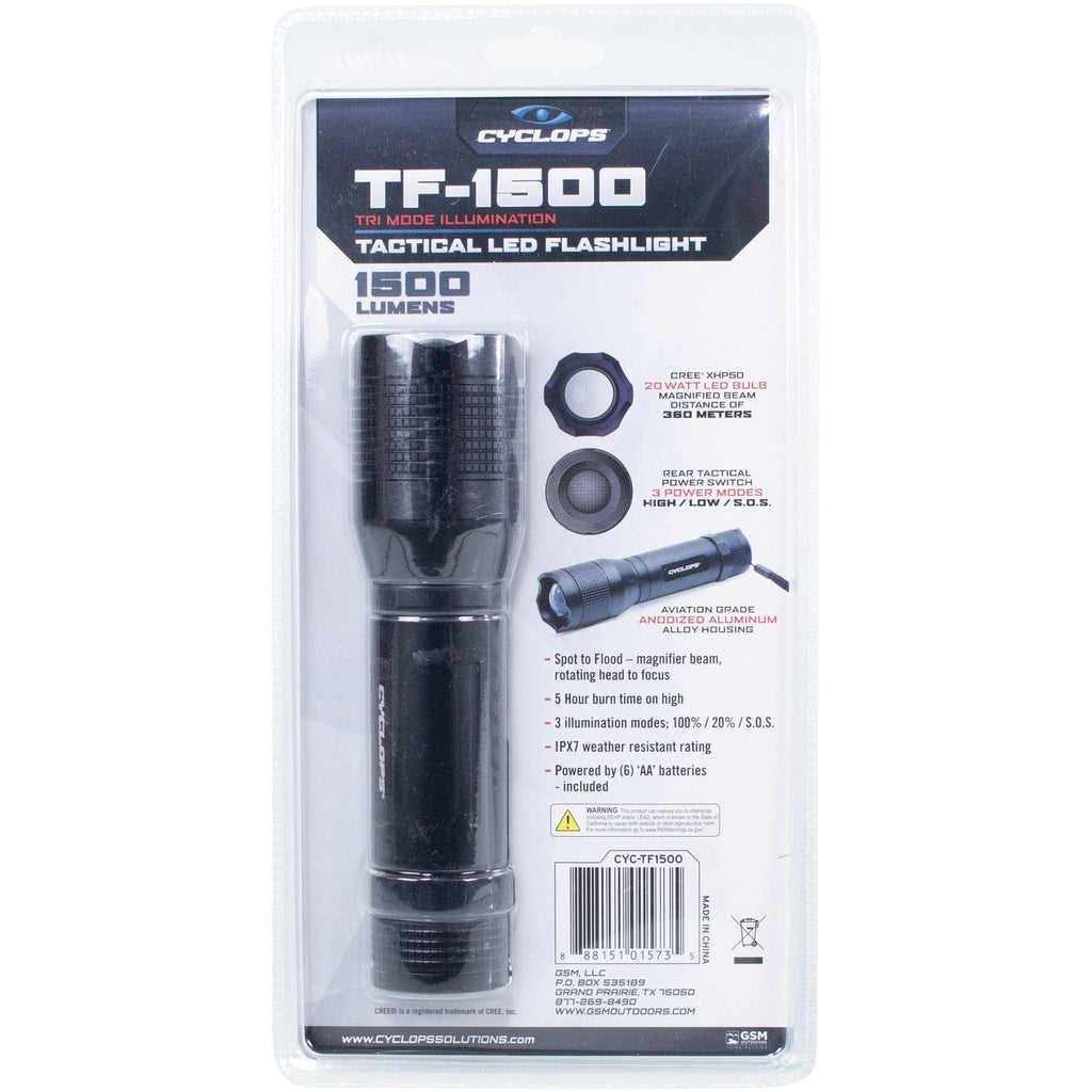 Police officers, first responders, firemen, and more know that the right tactical flashlight needs to be powerful and durable. That's why Cyclops developed this 1,500-Lumen Tactical Flashlight. It's made of anodized aluminum alloy, giving it a rugged design that can stand up to the toughest challenges. It is also water-resistant (IPX7) and has a rear tactical switch. The spot-to-flood feature helps shape light to match whatever situation is encountered. It has a maximum throw distance of 1,818 ft. plus has 4 modes: High, Low, SOS, and Off. It runs on 6 AA batteries and has a burn time of up to 5 hours.
