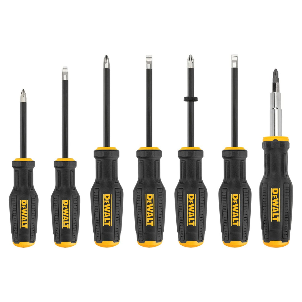 Fasten and remove screws using this hard-wearing TOUGHSERIES Screwdriver Set from DEWALT. Engineered to withstand the elements, these screwdrivers deliver 10x the corrosion resistance compared to standard levels*. For pro-grade durability, each hand tool features a nickel-coated tip, black chrome finish, and S2 steel bar construction for bend resistance. The tools' integrated MAX FIT tips were manufactured to reduce slippage and stripping for secure contact with fasteners. Take advantage of the comfortable grip delivered by the soft, bi-material handle for high-torque applications.