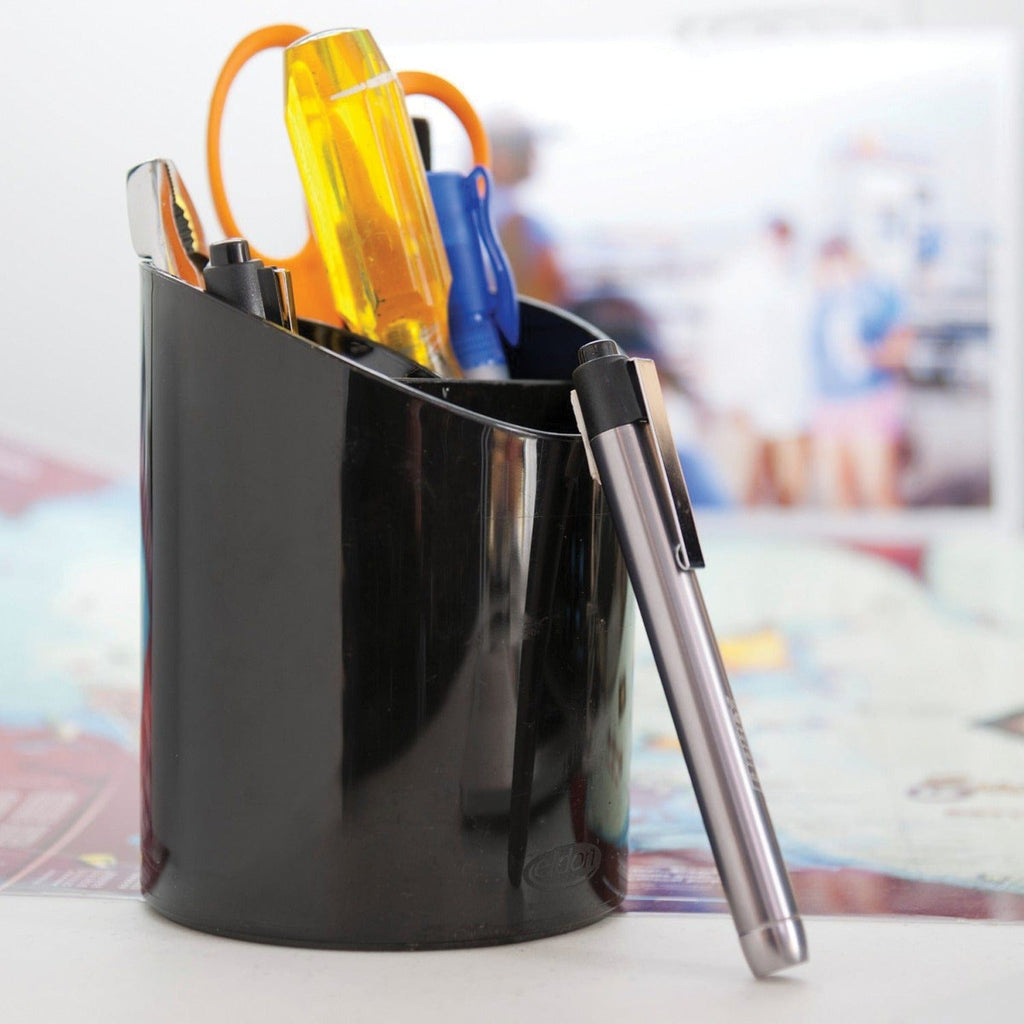 The LED Penlight from Dorcy is constructed of lightweight aluminum and is compact in design for easy use anywhere with the push of a button. This 5 mm flashlight features a durable metal clip for storage. The DCY411218 comes complete with 2 AAA cell batteries. The penlight color will either be Black or Silver, but there is no color choice.