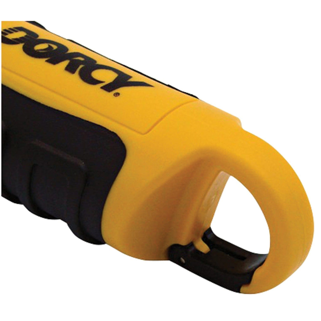 The 150-Lumen LED Carabiner Waterproof Flashlight from Dorcy features a waterproof design with floatability. The 41-2510 is constructed with shock-absorbing rubber around the head and the body of the light. The rubber design around the body allows for a slip-free comfortable grip, ensuring stability and durability. The waterproof flashlight has a uniquely built-in tail cap carabiner clip and comes complete with 3 AA cell batteries.