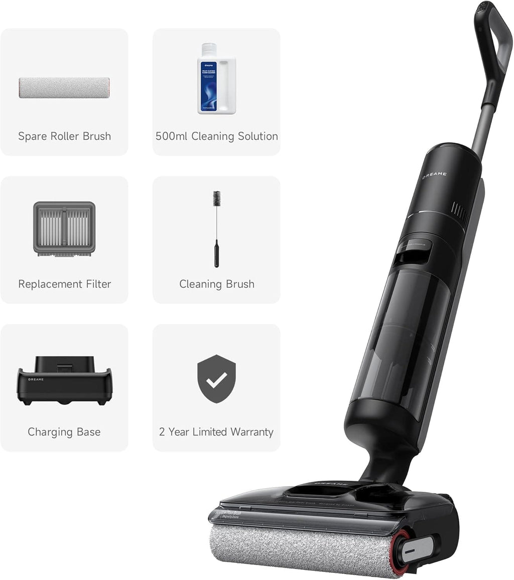 - 【Powerful Vacuum and Mop in One】With the impressive 18,000 Pa suction power, dreame H12 Pro FlexReach wet dry vacuum cleaner can vacuum and mop the floor at the same time, easily removing wet and dry messes. It's a time-saver and a big helper for floor cleaning, which can sparkle your home floor after every use.
