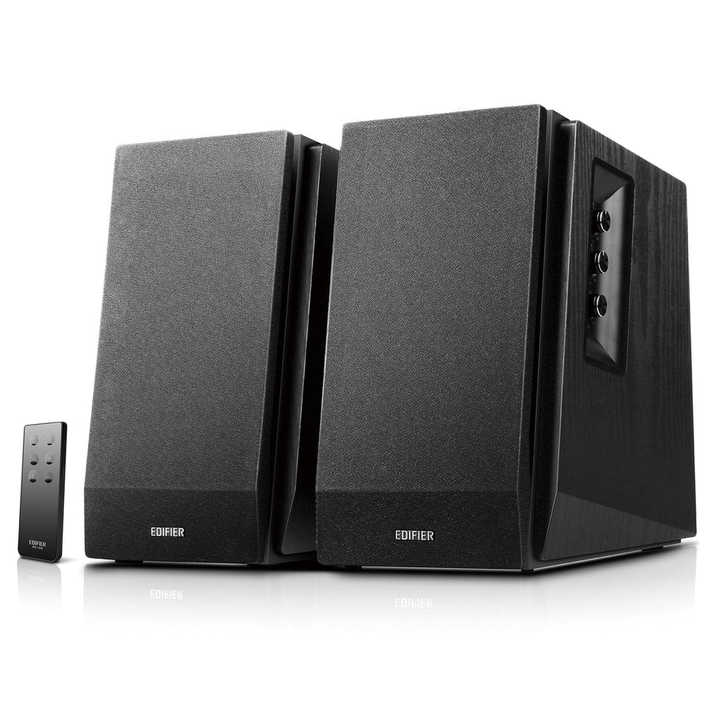 The Edifier R1700BT Bluetooth Bookshelf Speaker Pair offers a classic look that never goes out of style. Experience rich lows and crisp, clear highs with high-quality drivers and front-facing bass reflex port. DSP and DRC support minimize distortion. Easily access volume, playback, and more with a handy wireless remote that's small enough to fit in your pocket. And when you plug in your gaming console, computer, or TV, get ready for exceptional sound quality. Fashioned with a 10° angle to direct the sound exactly at you, it creates a better listening experience as it reduces interference.