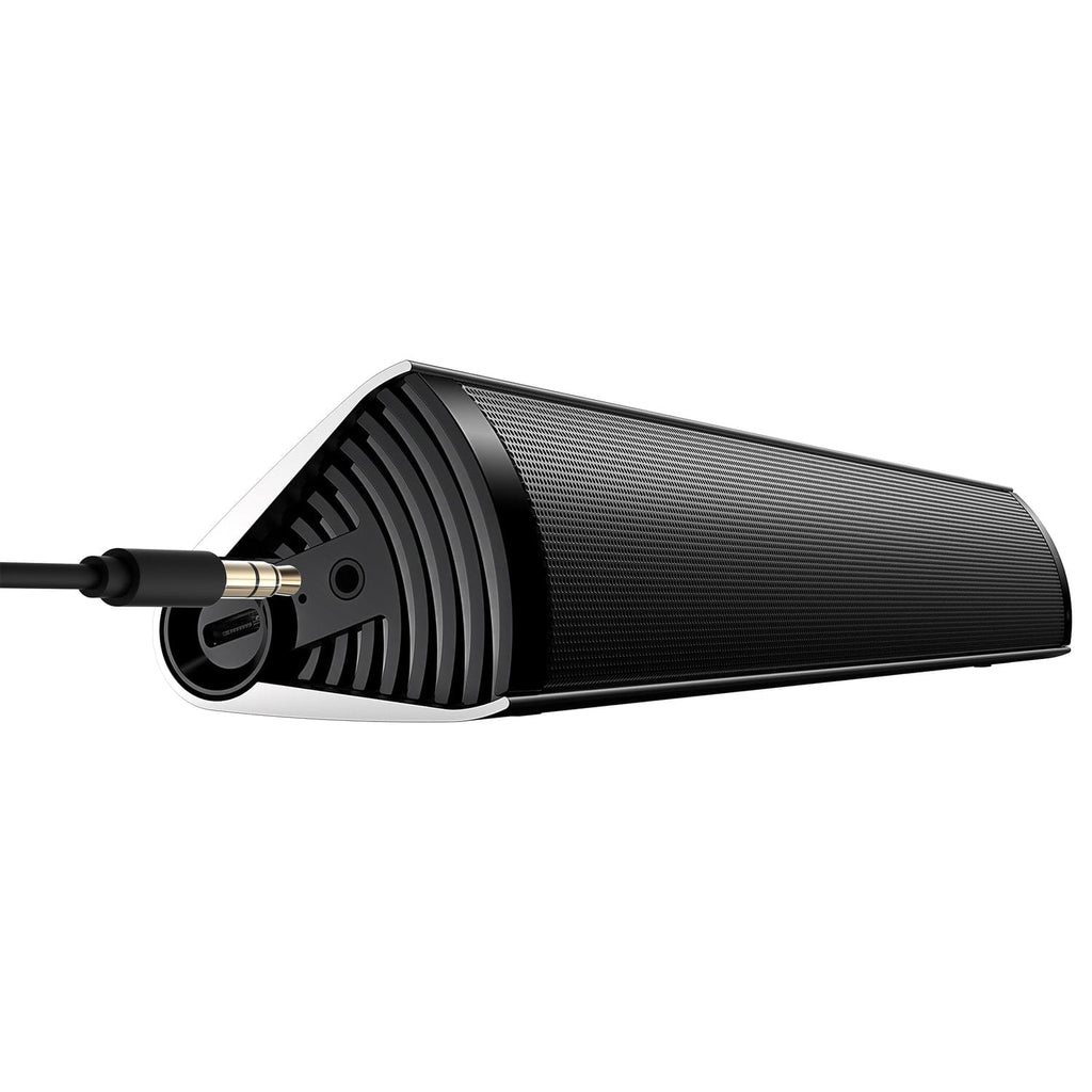 - USB-C® and 3.5-mm aux input for non-Bluetooth® devices; built-in sound card can be connected to your computer via USB-C® cable, which simultaneously allows audio transmission and speaker charging; media playback does not support smartphones, tablets, or iPads