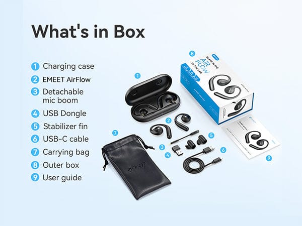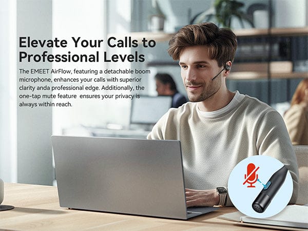 EMEET Airflow is for people who want a compact earbud without sacrificing mic quality. Airflow comes with a detachable mic boom, providing superior calling experience than any earbuds that does not has a mic boom, enabling seamlessly switch between professional calls and entertainment. The open-ear design reduces the fatigue to minimal, and keep you aware of all the surrounding.
