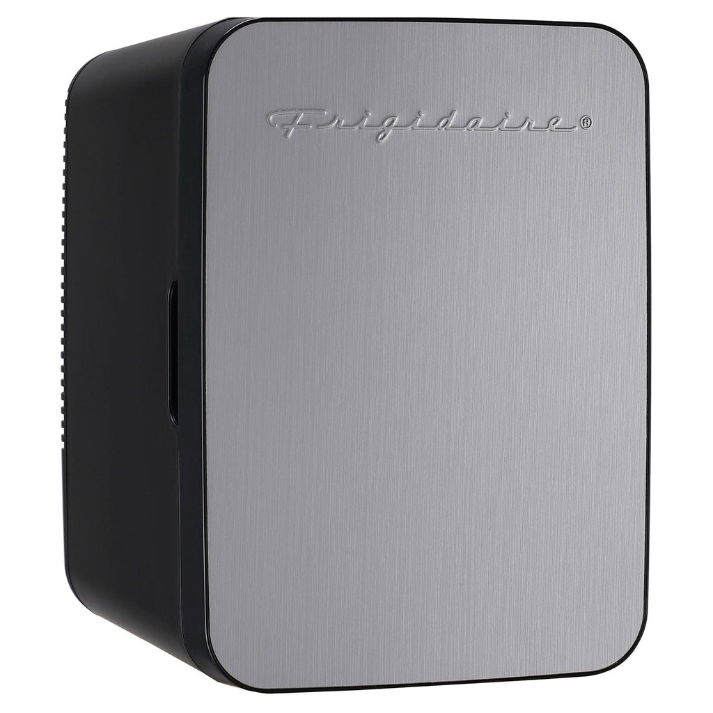 The Frigidaire Portable Retro Mini Fridge keeps drinks, snacks, small meals, and skin care products ice cold, with a fun, retro-inspired design that infuses a little fun into everyday life. It is built to last and uses thermoelectric technology that is free of CFCs and refrigerants. 2 shelves allow for storing multiple items and an in-door shelf allows you to easily store any sheet mask when using it as a skin-care fridge. The vintage logo on the stainless steel front enhances the nostalgia-inspired look and feel. Plus, it conveniently plugs into standard home outlets and 12-volt car accessory ports so you can take with you anywhere you go.