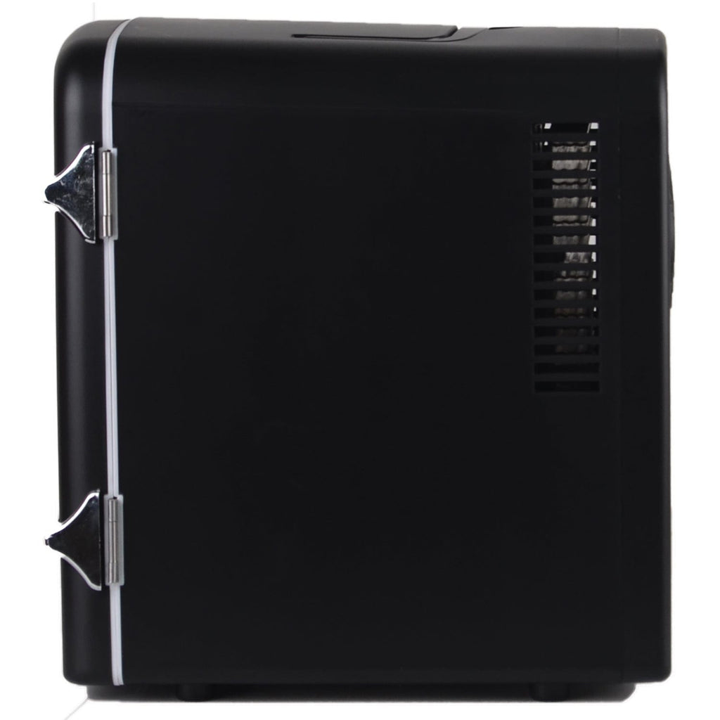 The Black Frigidaire 0.5 Cu. Ft. Retro Portable Mini Fridge is a cool and fun way to keep your favorite beverages and snacks cold. The retro design will look great with any decor whether contemporary or traditional. It is ideal for a dorm room, office, or RV and even for keeping make-up fresh. Take it with you while driving, since the fridge plugs in to 12-volt car adapter.