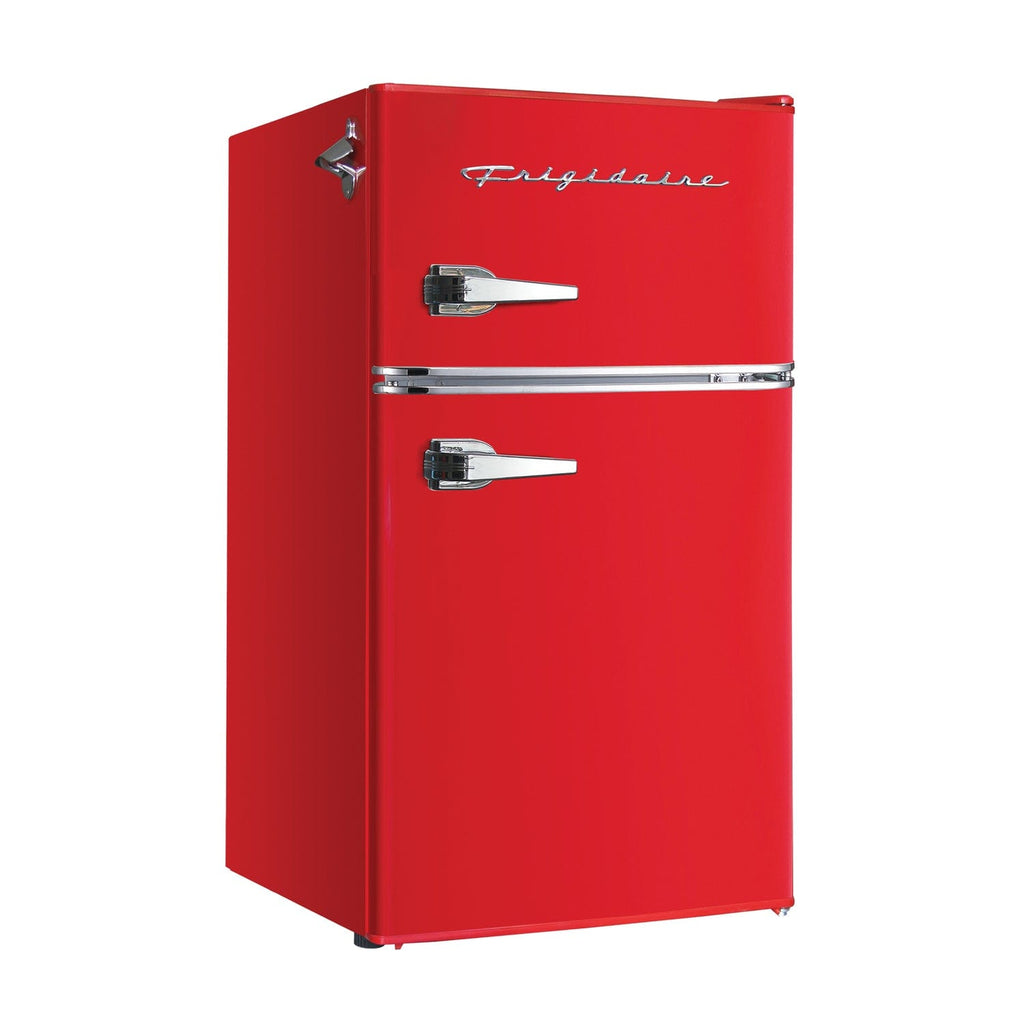 This 3.2-Cu. Ft. Retro Compact Bar Fridge with Freezer will definitely make a statement with its timeless design and modern functionality. It is roomy enough to fit all of your favorite beverages, frozen goodies, and fresh snacks yet compact enough to fit virtually anywhere. The side bottle opener is especially handy. This Red mini fridge is the ideal size for your bar area, man cave, she shed, dorm room, workshop, or office.