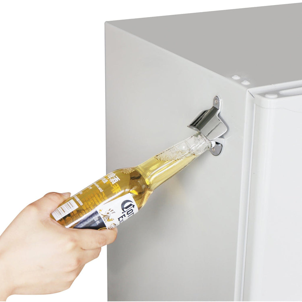 The White Frigidaire 3.2-Cu.-Ft. Retro Bar Fridge is party-ready with an attached bottle opener and enough room for any type of beverage or snack. The interior freezer compartment will keep ice at the ready or your frozen treat nice and chilled. The stylish design will complement any decor, whether in the kitchen, college dorm room, bedroom, or wherever you need it.