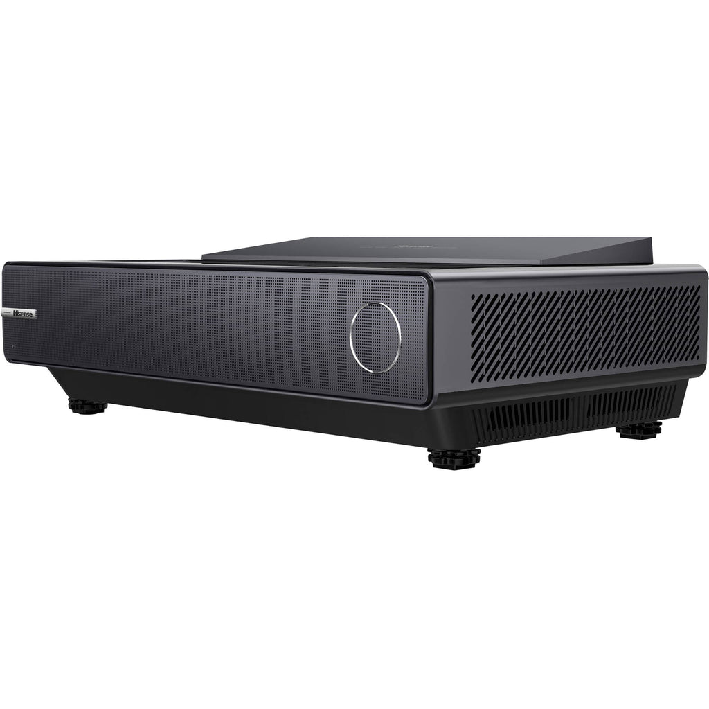 Enjoy big-screen smart TV functionality with the Hisense PX1-PRO 2200-Lumen XPR 4K UHD Smart Ultra-Short Throw Laser DLP Projector. This projector features a laser light source that outputs up to 2200 lumens of brightness for use under a variety of lighting conditions. The two HDMI inputs support the HDR10 and HLG HDR formats for vibrant color with compatible source content. It has stereo speakers built-in that output up to 30 total watts. The included remote control has a built-in microphone, which lets you control the projector with just your voice via the built-in Google Assistant or your Alexa ecosystem.