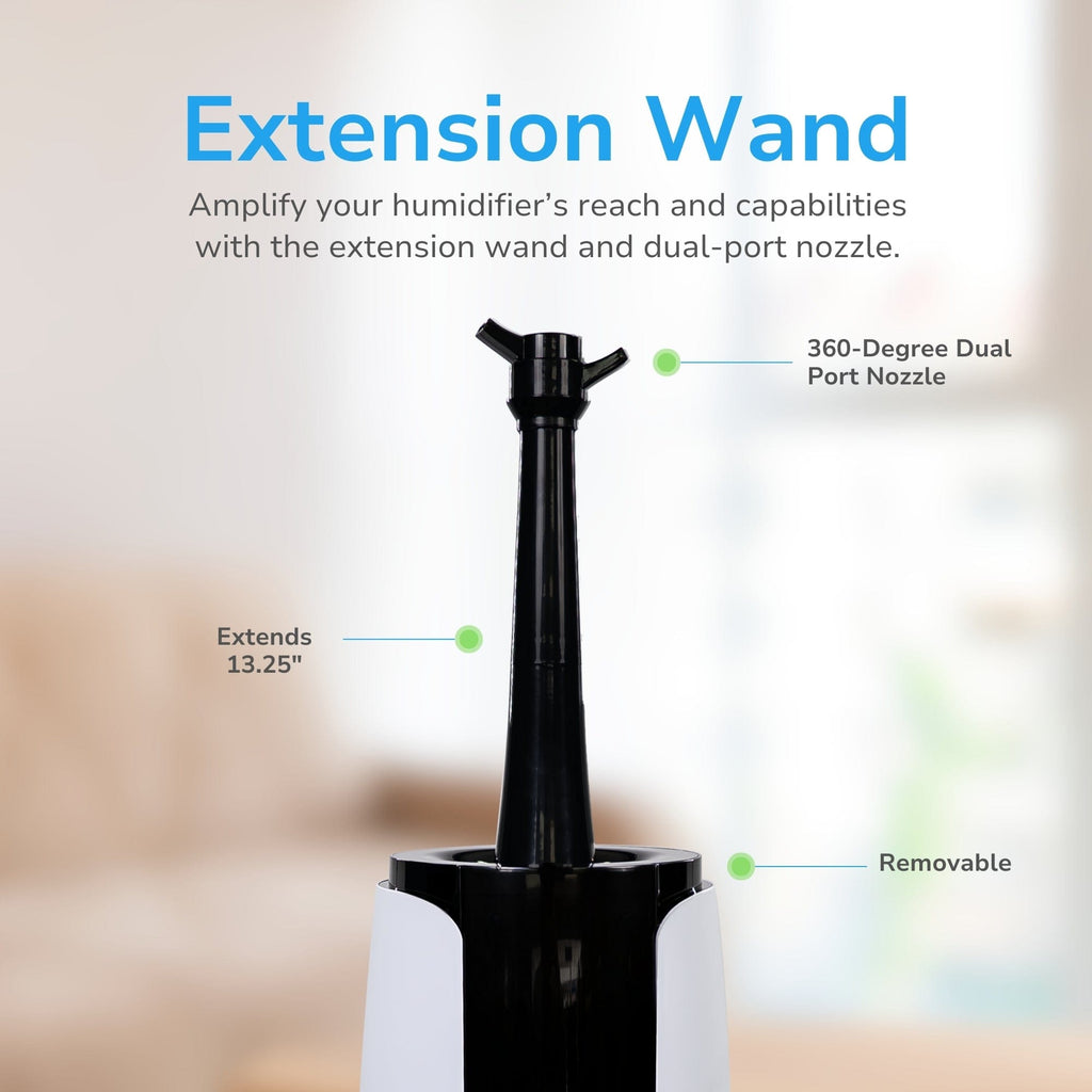 - 360 Degree Rotatable Dual port nozzle and extension wand allows for greater reach and customizable mist flow in multiple directions for your environment and preference.