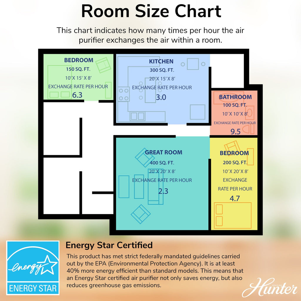 The Hunter HP670 is also ENERGY STAR rated for lower energy consumption and features a sleep mode with whisper-quiet operation for uninterrupted sleep. And if you want to add a touch of ambiance or use it as a nightlight, the optional LED accent light is the perfect addition.