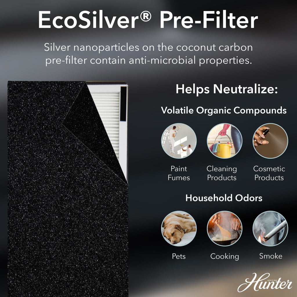 - COCONUT CARBON PRE-FILTER: The Coconut Carbon Pre-Filter not only captures larger particles but also excels in eliminating harmful VOC's, stubborn household odors, and pet odors, ensuring a comprehensive air purification experience with the HP600 Large Room HEPA Air Purifier.