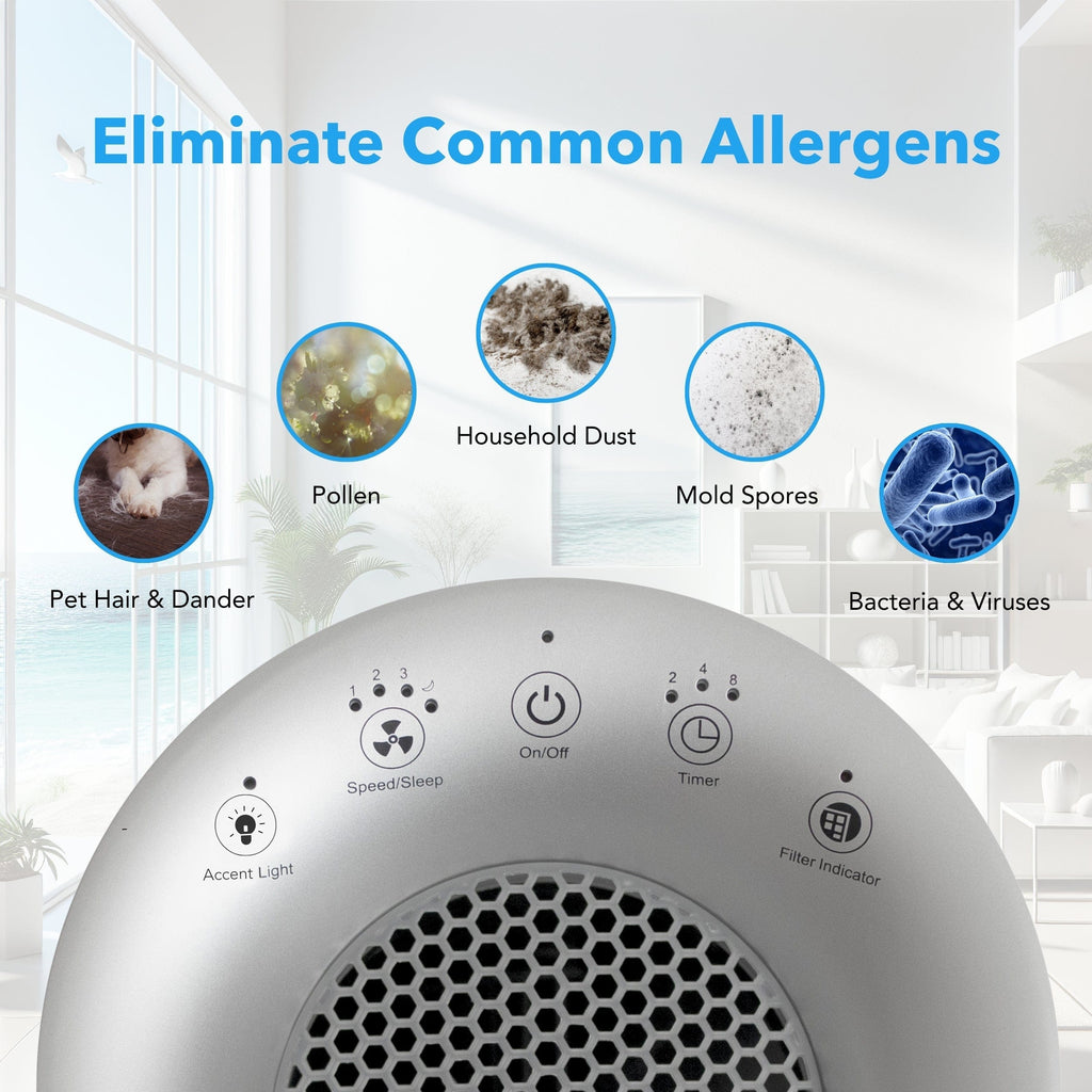 - HIGH EFFICIENCY PURIFICATION: Equipped with a True HEPA filter and EcoSilver pre-filter, Hunter air purifiers for home can capture up to 99.97% of airborne particles and reduces allergens and microorganisms for a healthier home environment. Removes pollen, dust, VOC's, pet hair, and other dander to ensure you're breathing in fresh, clean air.