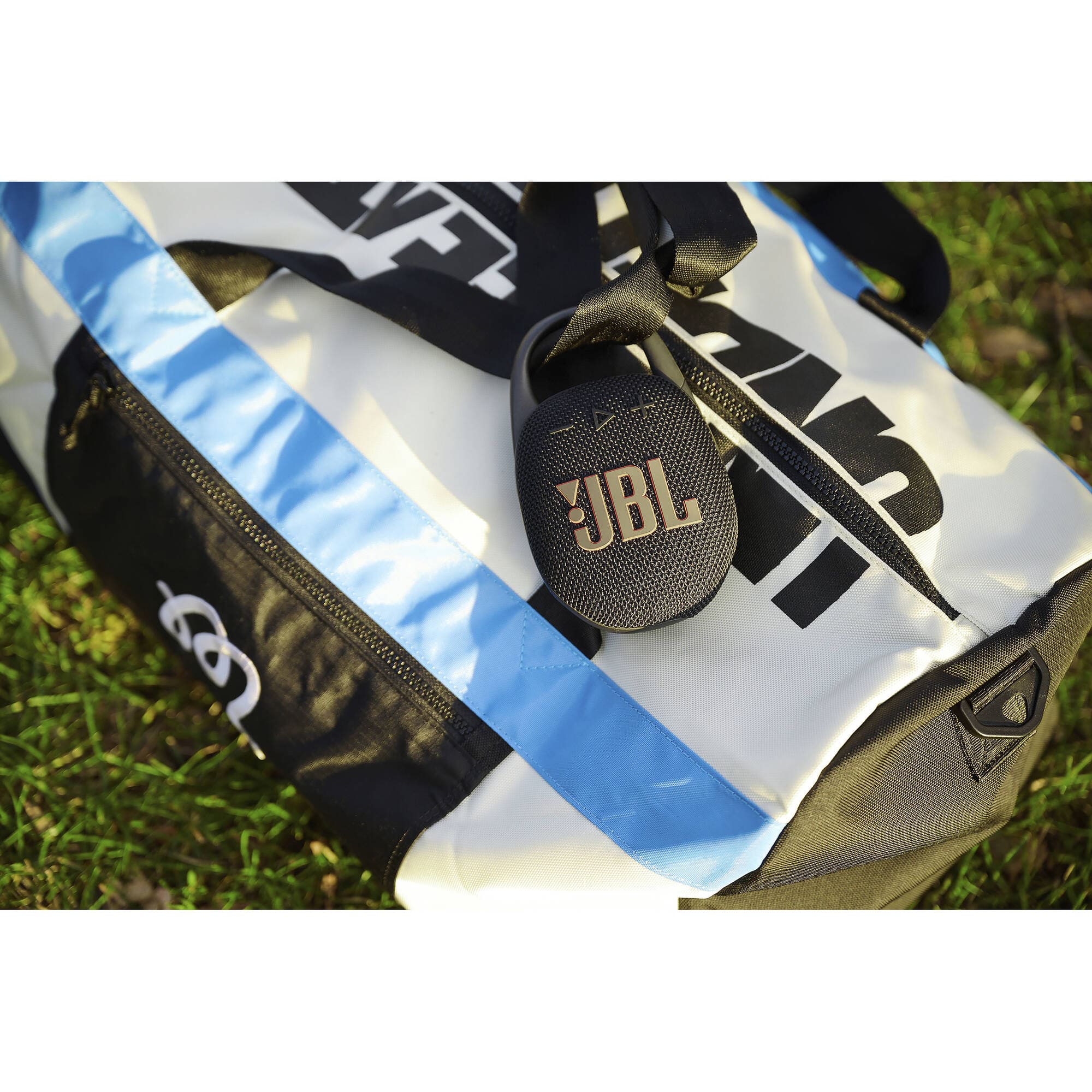 Small but mighty, you can enjoy powerful JBL Pro Sound on your next outdoor adventure with this white-colored Clip 5 Portable Waterproof Wireless Speaker from JBL. Whether you like to camp and hike or hit the pool or beach, the Clip 5 can handle the elements with its IP67-certified waterproof and dustproof shell. With it's ultra-portable size and integrated carabiner clip handle, you can easily carry it with one hand or attach it to your backpack. Designed with a single driver and passive radiator, the Clip 5 is made to deliver surprisingly loud and clear sound, but you can always pair two for stereo sound or link up with other Auracast-enabled speakers. On a single charge, listen for up to 12 hours or 15 hours with Playtime Boost enabled.Features