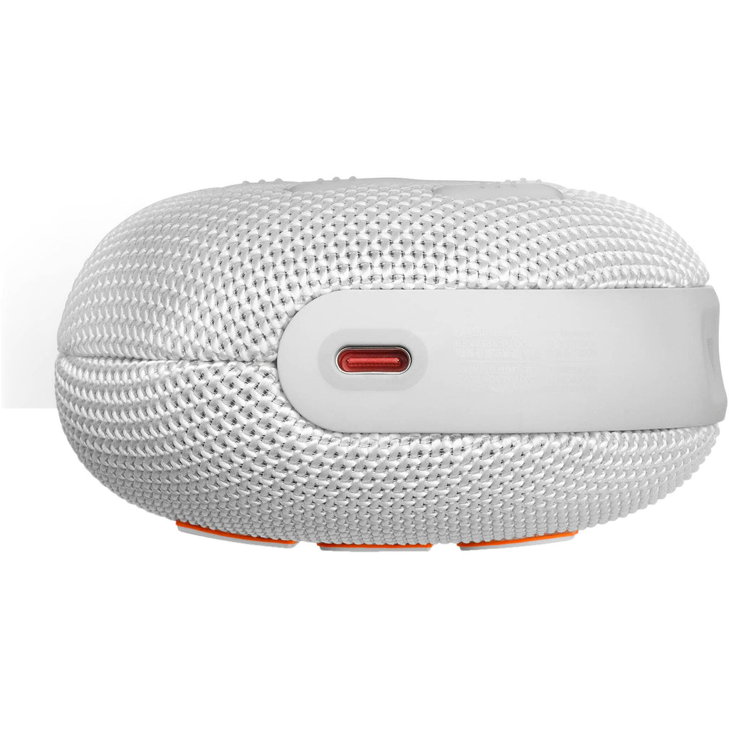 Small but mighty, you can enjoy powerful JBL Pro Sound on your next outdoor adventure with this white-colored Clip 5 Portable Waterproof Wireless Speaker from JBL. Whether you like to camp and hike or hit the pool or beach, the Clip 5 can handle the elements with its IP67-certified waterproof and dustproof shell. With it's ultra-portable size and integrated carabiner clip handle, you can easily carry it with one hand or attach it to your backpack. Designed with a single driver and passive radiator, the Clip 5 is made to deliver surprisingly loud and clear sound, but you can always pair two for stereo sound or link up with other Auracast-enabled speakers. On a single charge, listen for up to 12 hours or 15 hours with Playtime Boost enabled.