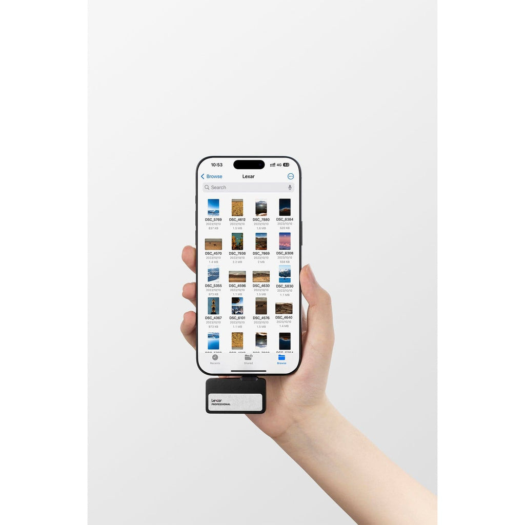 The ultimate in ultra-portable SSDs, this compact Professional Go Portable SSD from Lexar plugs right into your phone, and lets you shoot seamless video straight to the drive from your iPhone 15 Pro/Pro Max or iPhone 16 Pro/Pro Max. Weighing a mere 0.4 oz. (13 g) but packing a mighty capacity, this durable drive delivers USB 3.2 Gen 2 performance of 1,050 MB/s read, 1,000 MB/s write to capture seamless ProRes 4K video and power through post-production processes right on the drive.