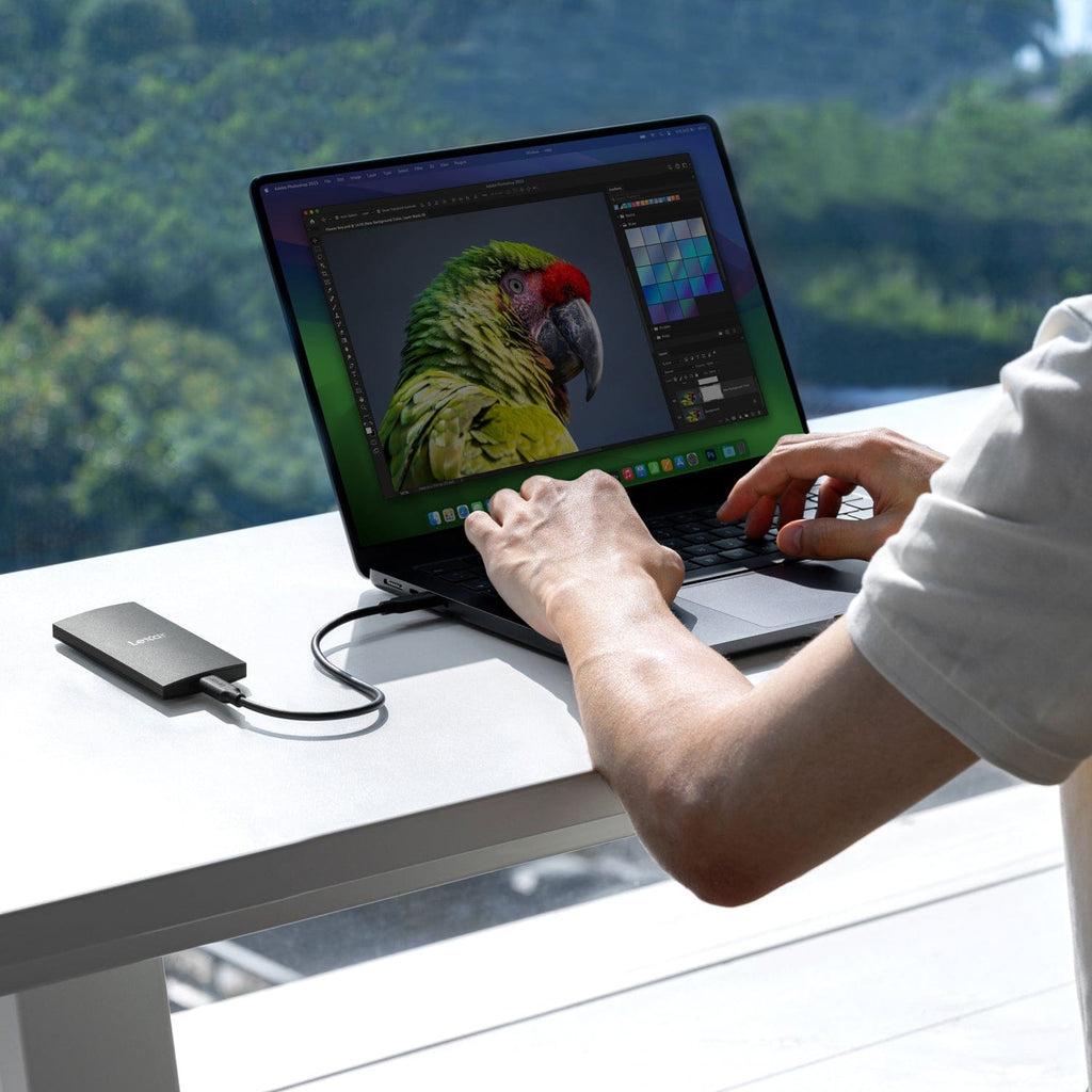The Lexar SL300 Portable SSD unleashes incredible performance with 1,050 MB/s read and 1,000 MB/s write speeds clocking in at 9.5x faster than HDDs. It also features a 2-in-1 USB-C/USB-A cable to offer wide compatibility with your devices, built-in double-layer graphite sheets for enhanced heat dissipation, drop resistance, and plug-and-play compatibility.