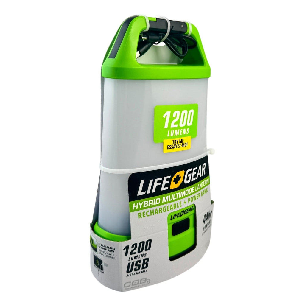 The Life+Gear Hybrid Multi-Mode Lantern is a versatile, USB rechargeable lantern that also runs on your 3 AA alkaline batteries (not included) for backup power when you need it most. Featuring 360° area lighting and 4lighting modes - Cool White, Natural White, Red Steady, and Red Flash - its built for both function and flexibility. Easily adjust brightness on white modes with simple press-and-hold dimming and stay prepared with automatic power switching when rechargeable batteries drop below 20%. The built-in USB outport doubles as an emergency power bank to charge your devices, while the swing-open carry handle allows for hands-free hanging. With a steady base, nonslip grip, 6.4-ft. impact resistance, and water-resistant IPX rating, this lantern is your reliable companion for camping, emergencies, and everyday tasks.