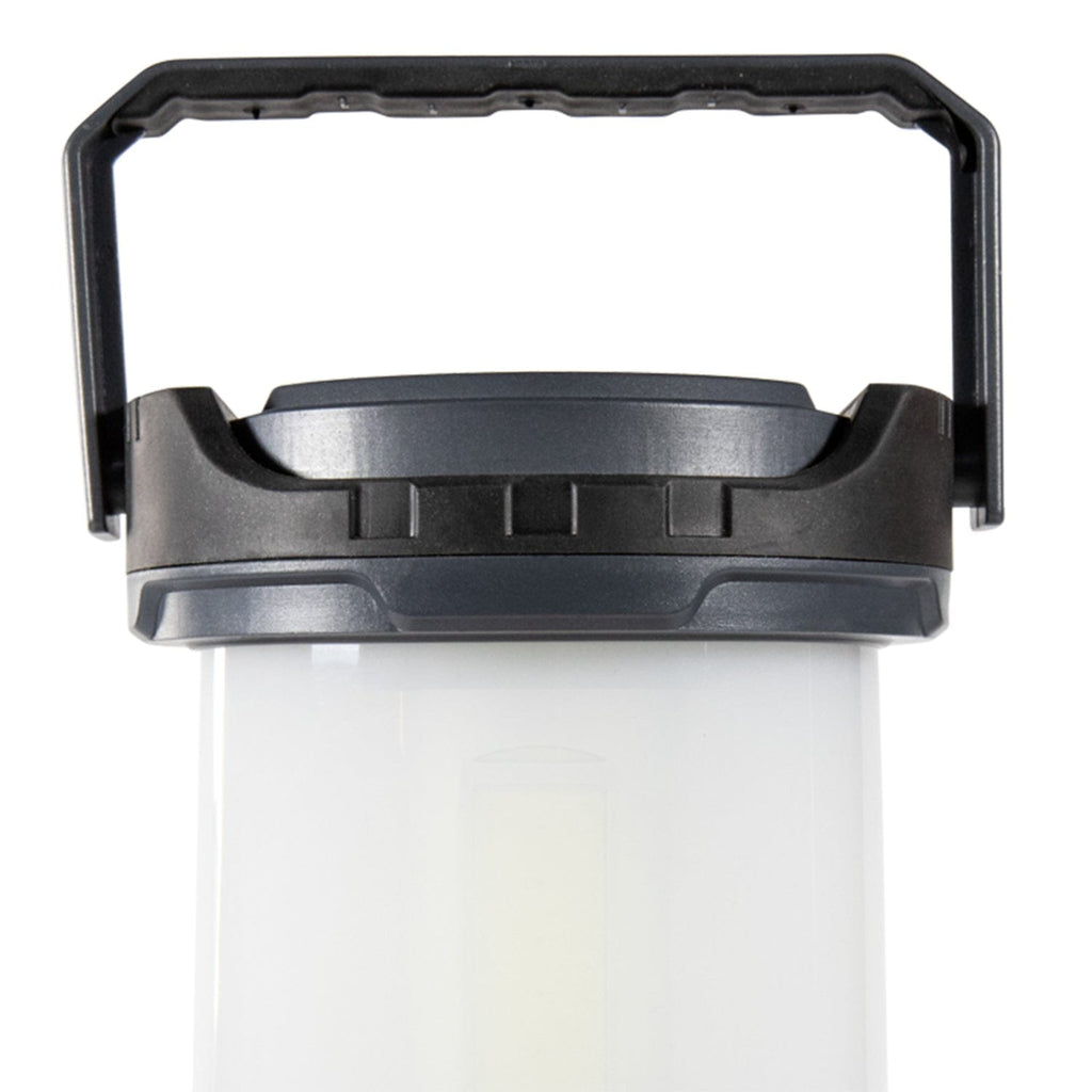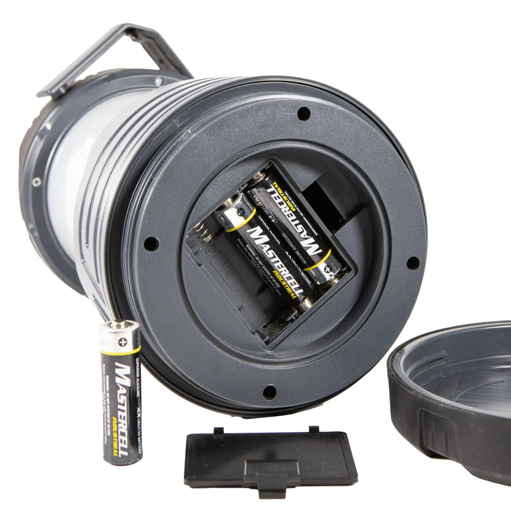 The Life+Gear Hybrid Multi-Mode Lantern is a versatile and powerful lighting solution with a red LED safety mode and USB output for added convenience. This lantern operates either with its built-in rechargeable battery or 3 AA alkaline batteries (sold separately), providing flexibility for various settings. When recharged by USB-C, the lantern emits up to 1,600 lumens on high mode, 900 lumens on medium, and 600 lumens on low. Run time on high is up to 2 hours, 40 minutes. When powered by your alkaline batteries, it offers 660 lumens on high, 375 lumens on medium, and 250 lumens on low. Run time on high is up to 3 hours and 10 minutes. With a simple push-button switch and power indicator, users can choose from low, medium, high, solid red, or flashing red light modes. Designed for soft area lighting, its frosted lens ensures a comfortable glow, while the USB output enables it to double as a power bank. The lantern also includes a fold-down carry handle and metal hooks for convenient hanging, plus a charging indicator switch. Built to withstand outdoor conditions, it is IPX4 rated for water resistance and can endure impacts up to 3.2 ft.