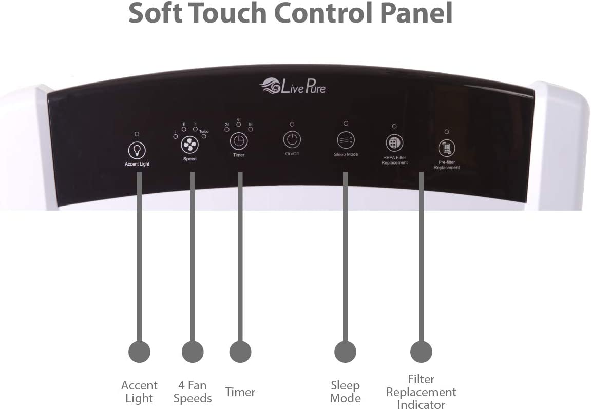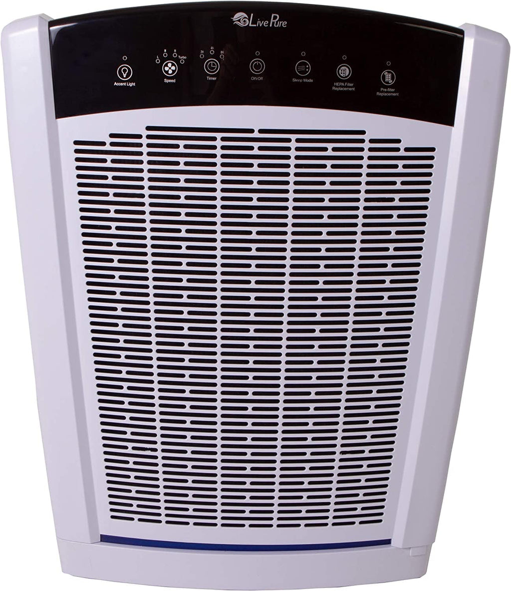 The Bali Series LP550TH is a powerful next-generation air purifier from Live Pure. This large console model can clean the air in a 550 sq. ft. room over 117 times a day. It features a gasket sealed medical-grade True HEPA filter that traps up to 99. 97% of allergens and irritants passing through the filter. Particles as small as 0. 3 microns (the equivalent of 0. 0000118 inches) are eliminated keeping you healthy and your air clean and fresh. True HEPA filters are effective at capturing particles including smoke, dust, pet hair and dander, pollen, mold spores, and dust mite debris. The Coco Carbon pre-filter features natural coconut carbon, which helps to reduce harmful VOCs as well as household odors from the air. The Bali Series LP550TH air purifier is elegantly designed to fit easily into spaces in your home. CFM 401