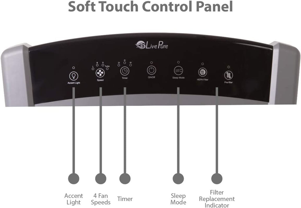 The Bali Series LP550TH is a powerful next-generation air purifier from Live Pure. This large console model can clean the air in a 550 sq. ft. room over 117 times a day. It features a gasket sealed medical-grade True HEPA filter that traps up to 99. 97% of allergens and irritants passing through the filter. Particles as small as 0. 3 microns (the equivalent of 0. 0000118 inches) are eliminated keeping you healthy and your air clean and fresh. True HEPA filters are effective at capturing particles including smoke, dust, pet hair and dander, pollen, mold spores, and dust mite debris. The Coco Carbon pre-filter features natural coconut carbon, which helps to reduce harmful VOCs as well as household odors from the air. The Bali Series LP550TH air purifier is elegantly designed to fit easily into spaces in your home. CFM 401