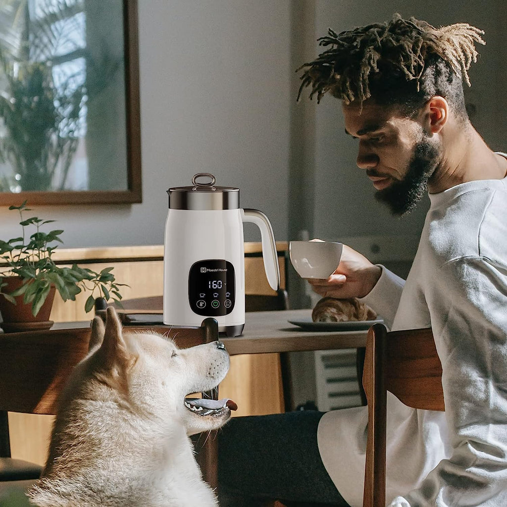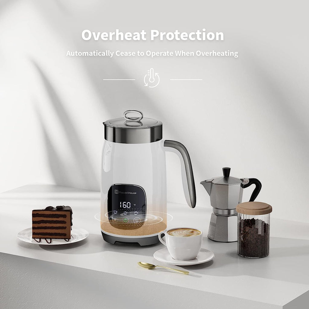 Maestri House milk frother is the first milk frother in the world that can adjust the temperature and thickness of the milk foam to make different kinds of coffee you like (such as cappuccino, latte, Mocha and more). A fresh start guides you through the day, there's nothing better than waking up to the smell of fresh coffee in the morning. You don't have to hit the streets or spend a fortune to enjoy these delights. Maestri House Milk Frother is just what you needed, whether it's a cappuccino, macchiato, espresso, or flat white, you can count on this frother to deliver perfect milk foam!Features