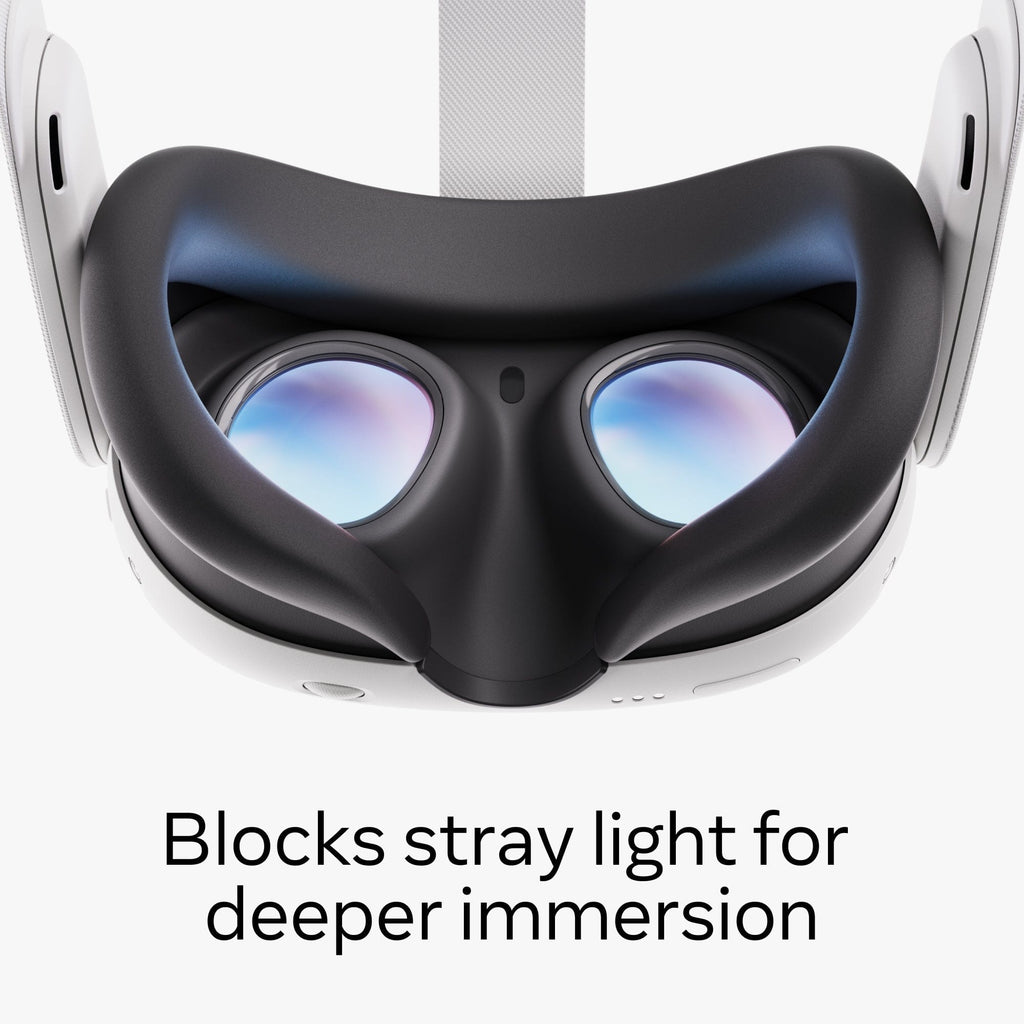 Keep your Meta Quest 3 headset clean and comfortable with this soft, silicone facial interface. Its soft and flexible materials are designed to provide skin comfort and a perfect fit, even during the most intense workouts or gaming sessions. Easily wipe off sweat and dirt while also blocking unwanted light from entering your headset. This genuine Meta Quest accessory installs in seconds and can even be used with glasses. Enjoy a cleaner and more comfortable experience each time you use your Meta Quest 3, whether you use it just for yourself or share your headset with others.