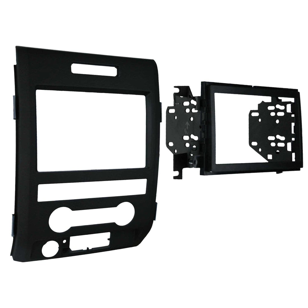 This Metra Double-DIN Stereo Installation Kit is engineered to help you install an aftermarket 4-in. tall (double-DIN) radio into select Ford F-150 2009 through 2014 vehicle dashboards. This dash kit helps make radio replacement simple and is painted scratch-resistant matte black to match the original look and feel of the vehicle's dashboard. Installing an aftermarket radio can upgrade the sound quality and provide additional features the original factory radio couldn't offer but needs this dash kit to make it fit.